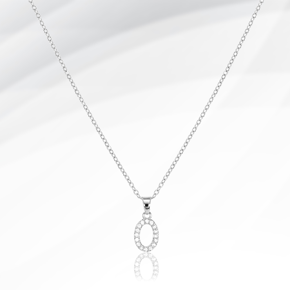 -O- Stainless Steel CZ Stone Paved Initial Monogram Pendant Necklace