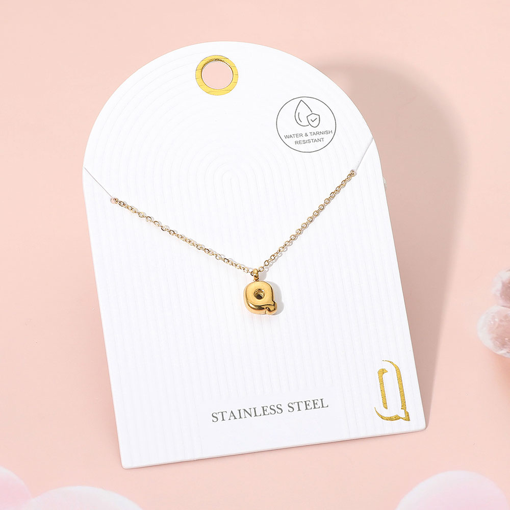 Details • Necklace Size : 18" L • Pendant Size : 0.3" L • Chic stainless steel necklace featuring a minimalist initial monogram pendant. Designed for everyday wear, this water and tarnish resistant piece adds a personal touch and effortless elegance to any outfit. • Stainless Steel