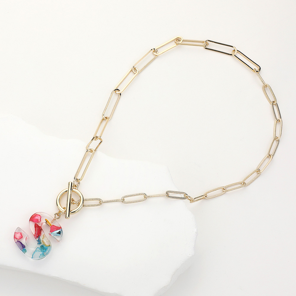 -B- Colorful Initial Monogram Pendant Toggle Necklace