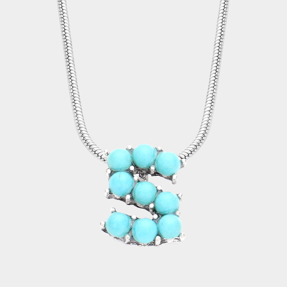 -S- Natural Stone Initial Monogram Pendant Necklace