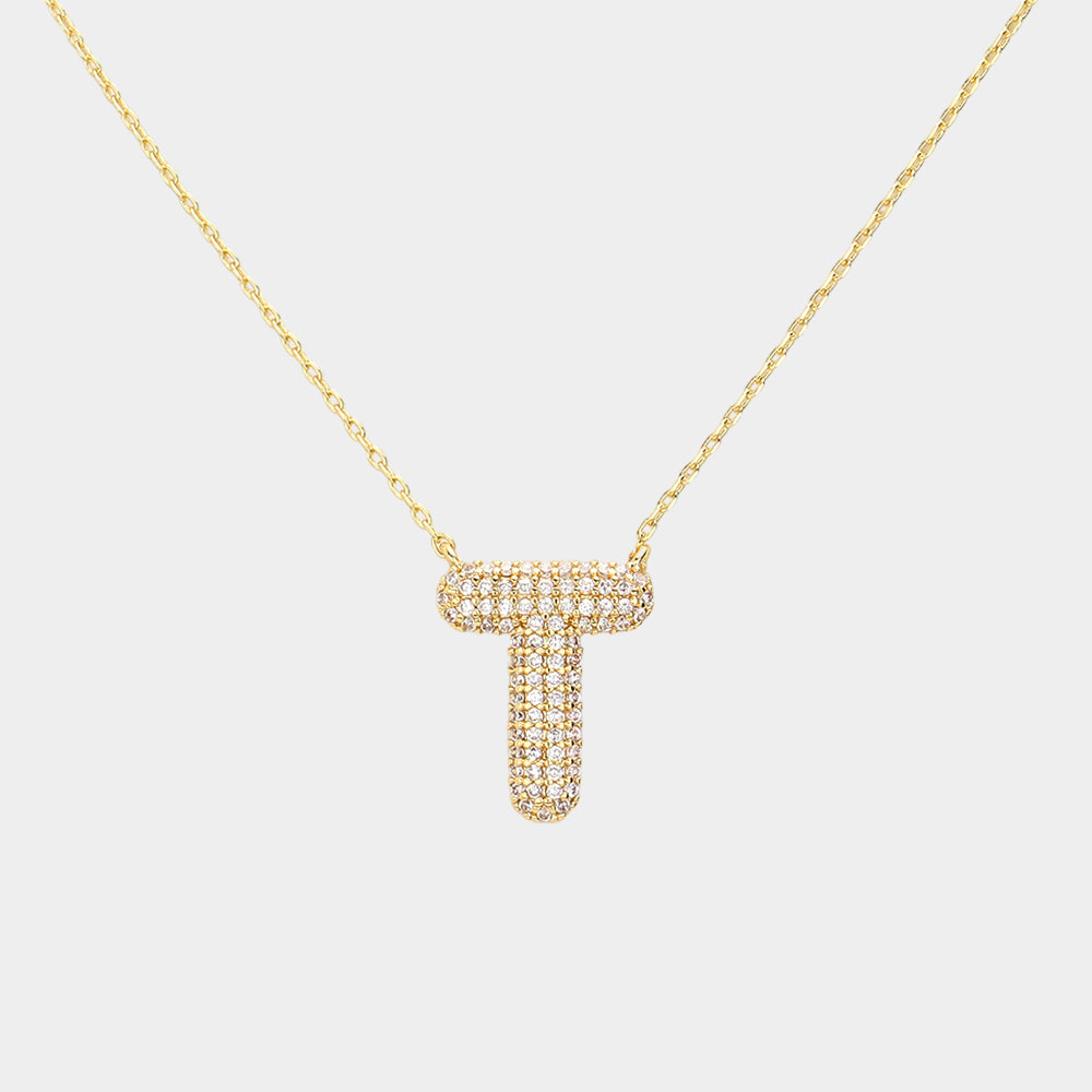 Details • Necklace Size : 15.5" + 2" L • Pendant Size : 0.6" X 0.65" • Letter T • Lead and Nickel Compliant • Made In Korea • Gold Dipped • CZ Cubic Zirconia