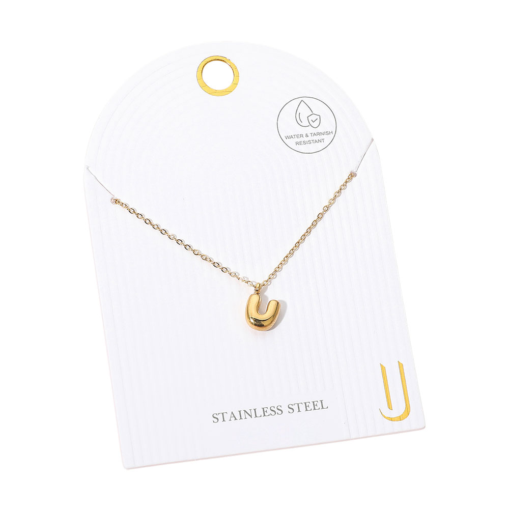 Details • Necklace Size : 18" L • Pendant Size : 0.3" L • Chic stainless steel necklace featuring a minimalist initial monogram pendant. Designed for everyday wear, this water and tarnish resistant piece adds a personal touch and effortless elegance to any outfit. • Stainless Steel