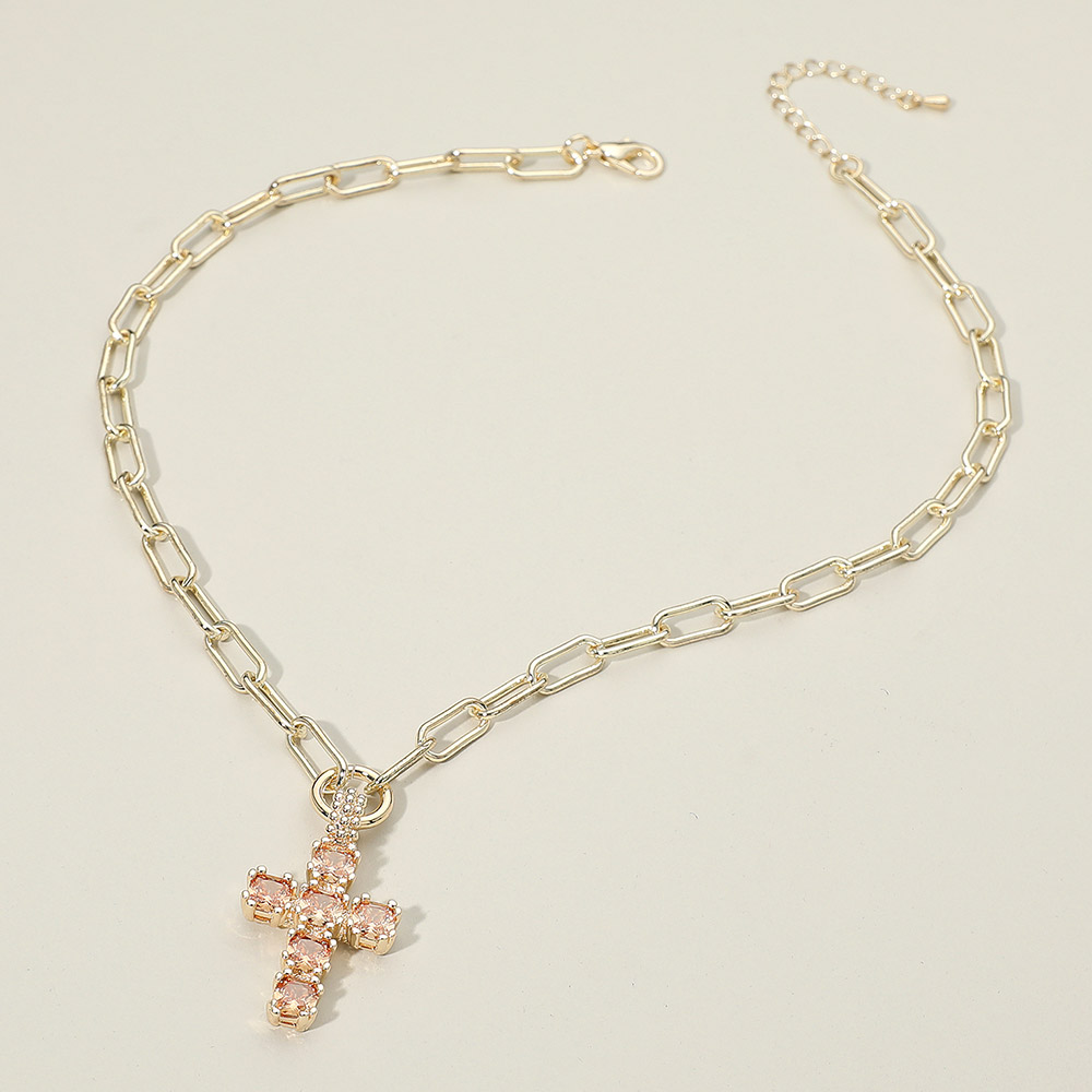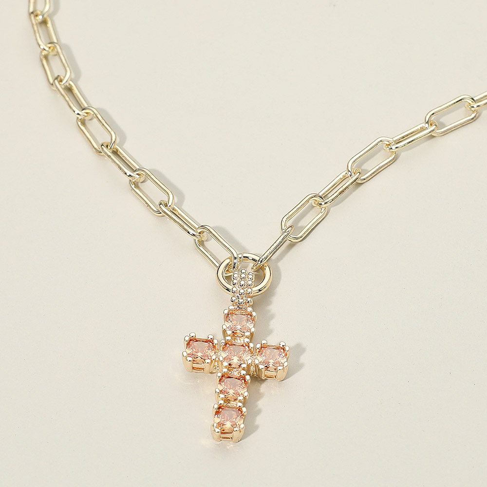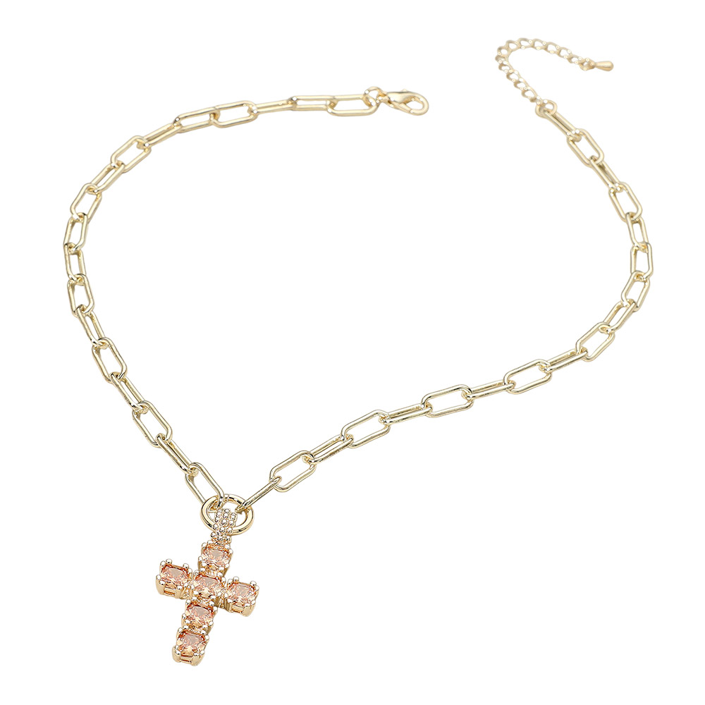 Details • Necklace Size : 17" + 2" L • Pendant Size : 0.9" X 1.5" • A refined necklace featuring a sparkling cross pendant suspended from a modern paperclip-style chain. Its polished finish and timeless silhouette make it a standout accessory for everyday wear or special occasions, adding a touch of elegance to any look. • CZ Cubic Zirconia • Gold Dipped