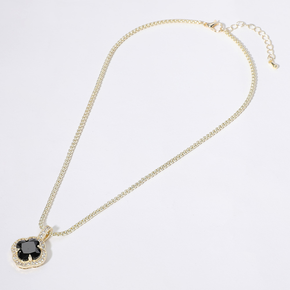 14K Gold Plated Onix Quatrefoil Motif Station Necklace