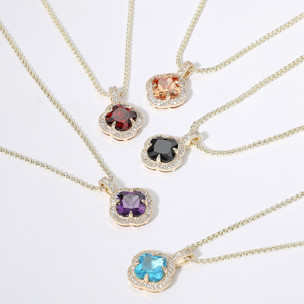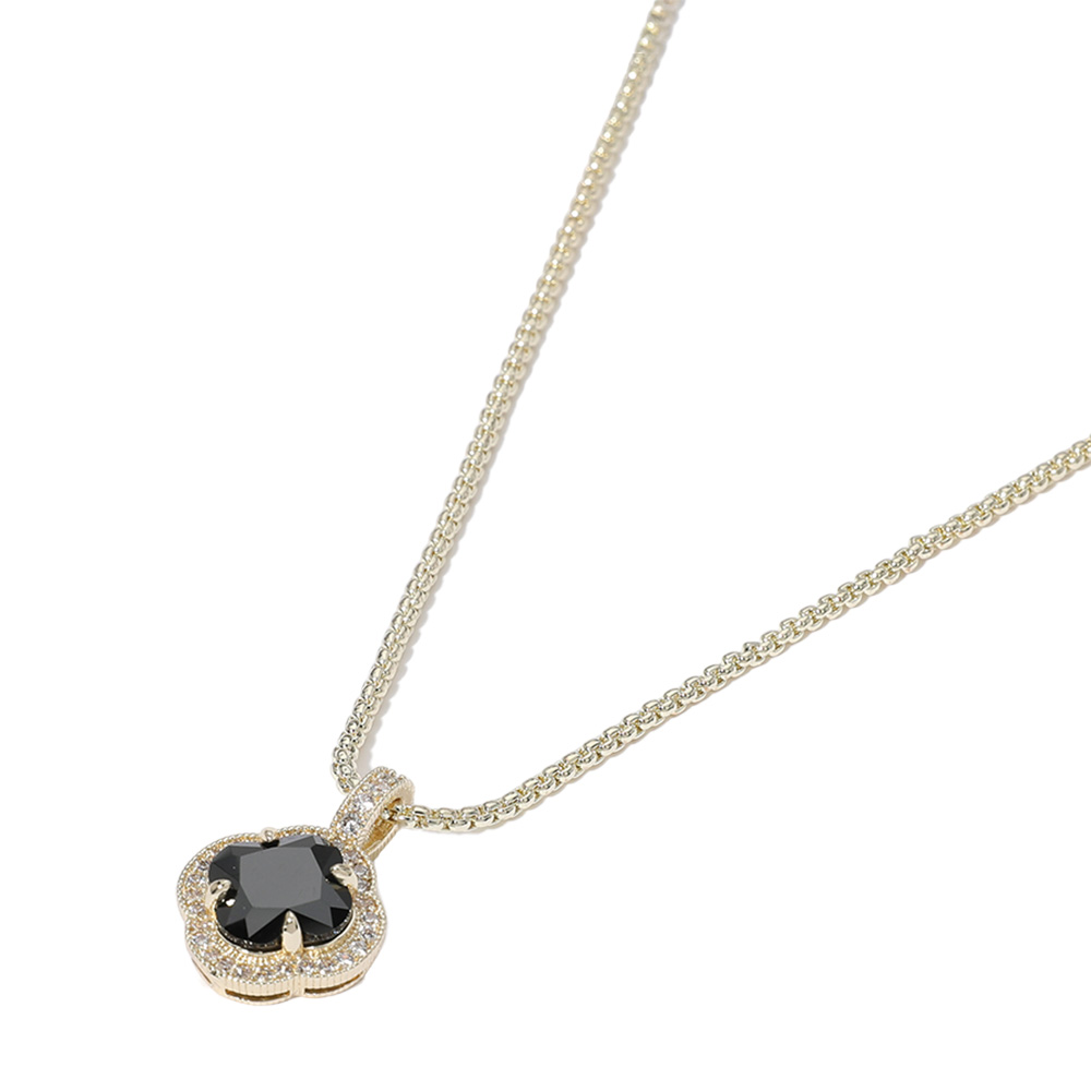 14K Gold Plated Quatrefoil CZ Stone Pendant Necklace