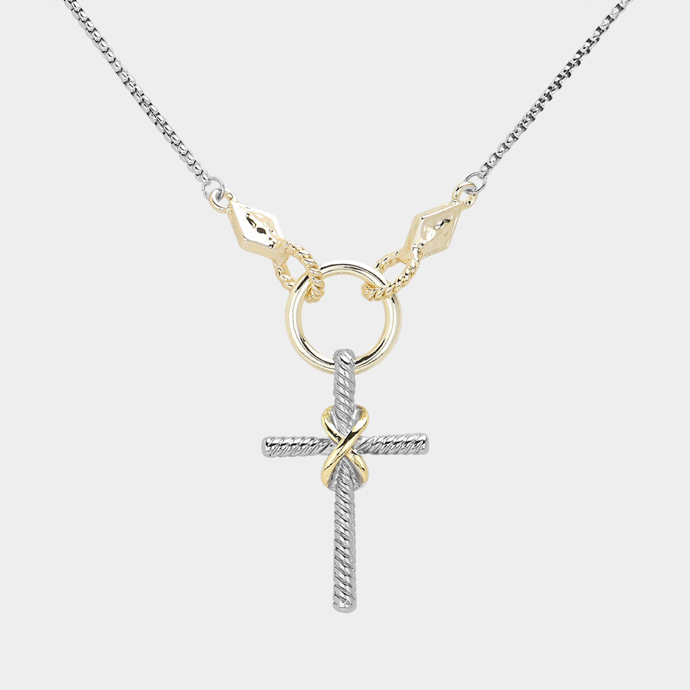 TRUST Engraved Cross Pendant Twisted Multi Metal Chain Necklace