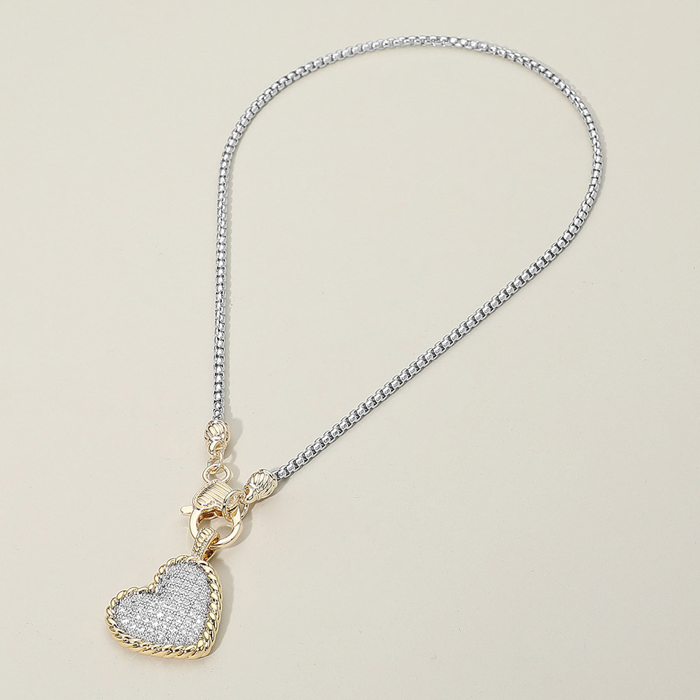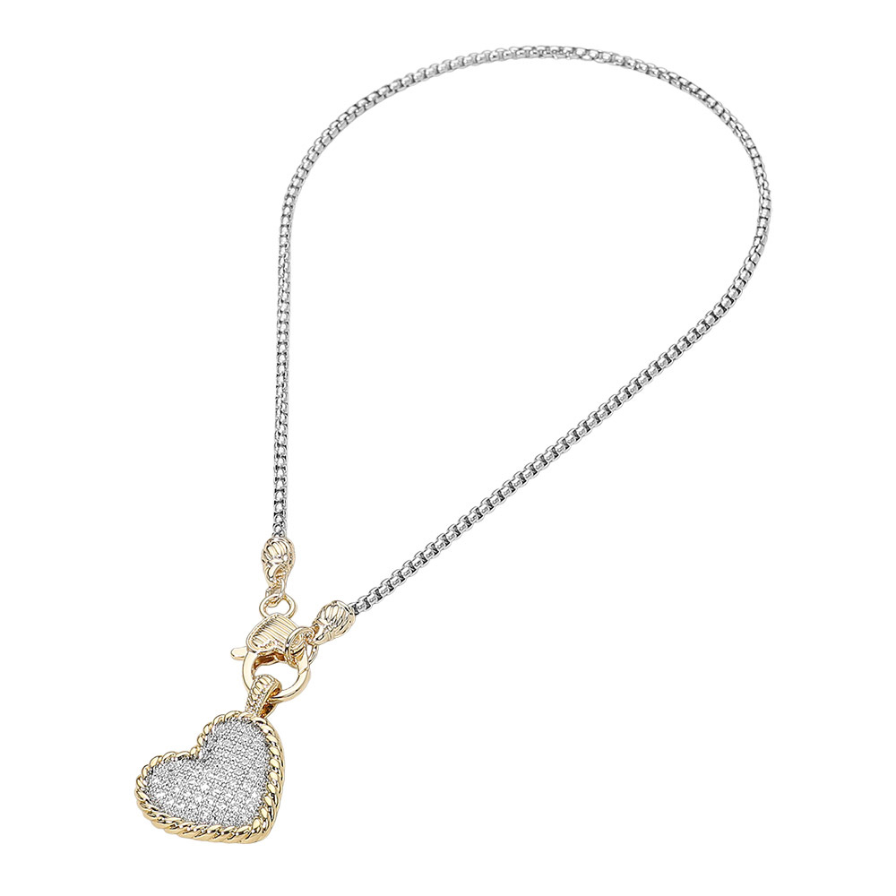 14K Gold Plated Two Tone CZ Stone Paved Heart Pendant Necklace 14K Gold Plated Two Tone CZ Stone Paved Heart Pendant Necklace 14K Gold Plated Two Tone CZ Stone Paved Heart Pendant Necklace