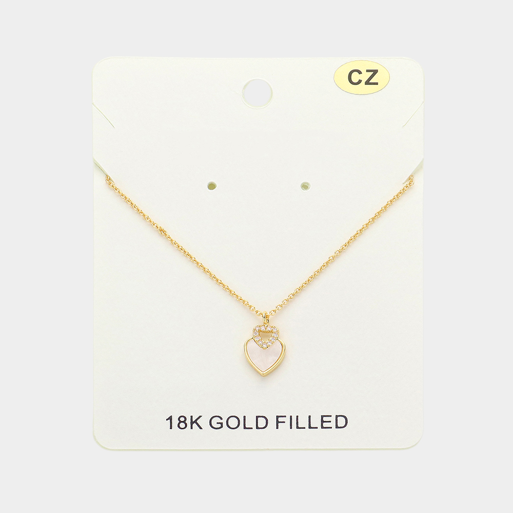 18K Gold Filled Mother Of Pearl CZ Stone Paved Heart Pendant Necklace