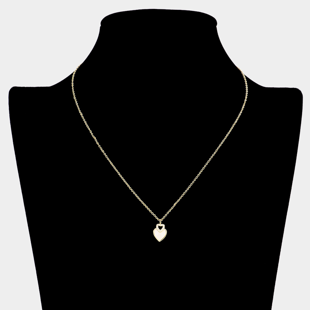 Mother Of Pearl CZ Stone Paved Heart Pendant Necklace