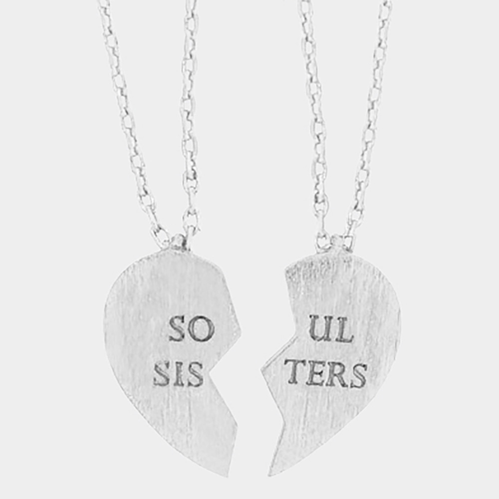 2PCS - SOUL SISTERS Message Breakable Heart Pendant Friendship Necklaces