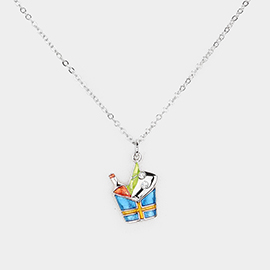 SECRET BOX_Sterling Silver Dipped CZ Embellished Enamel Avocado Pendant Necklace