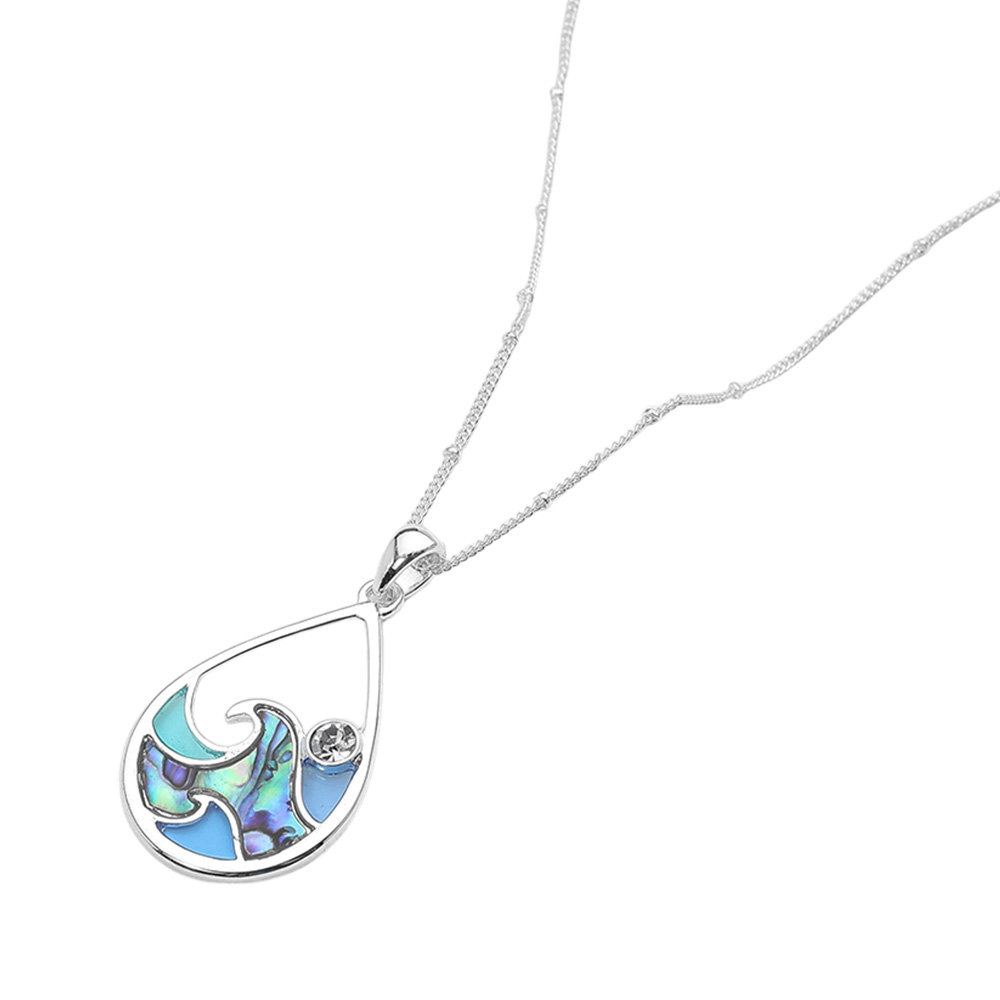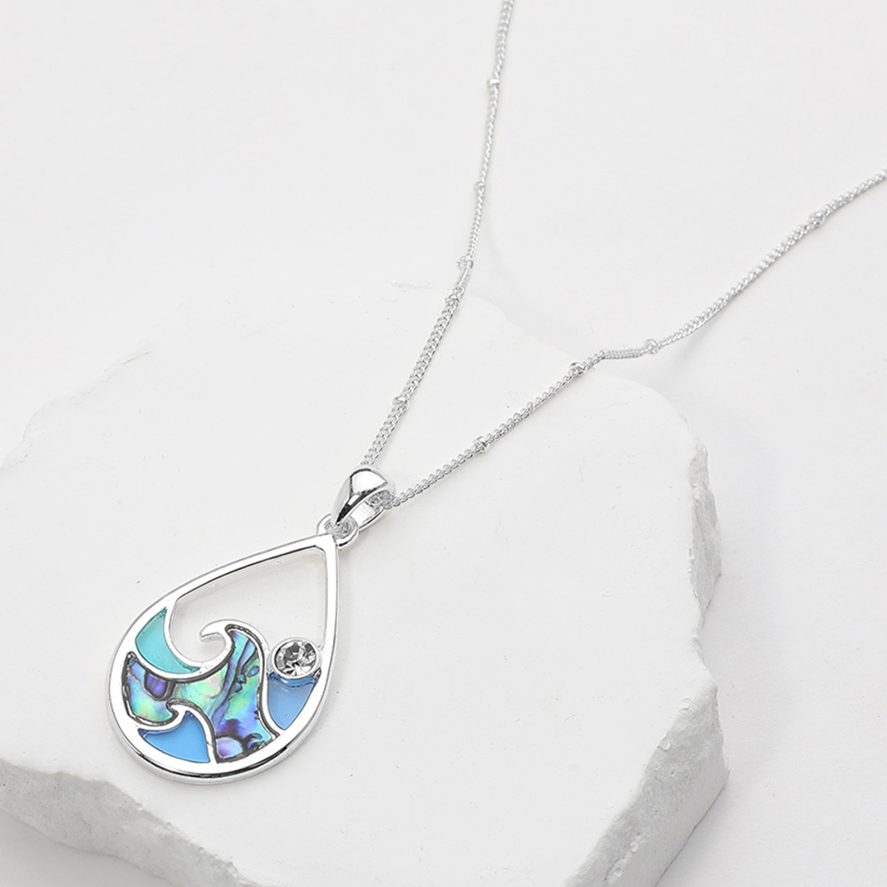 Abalone Sea Glass Wave Teardrop Pendant Necklace