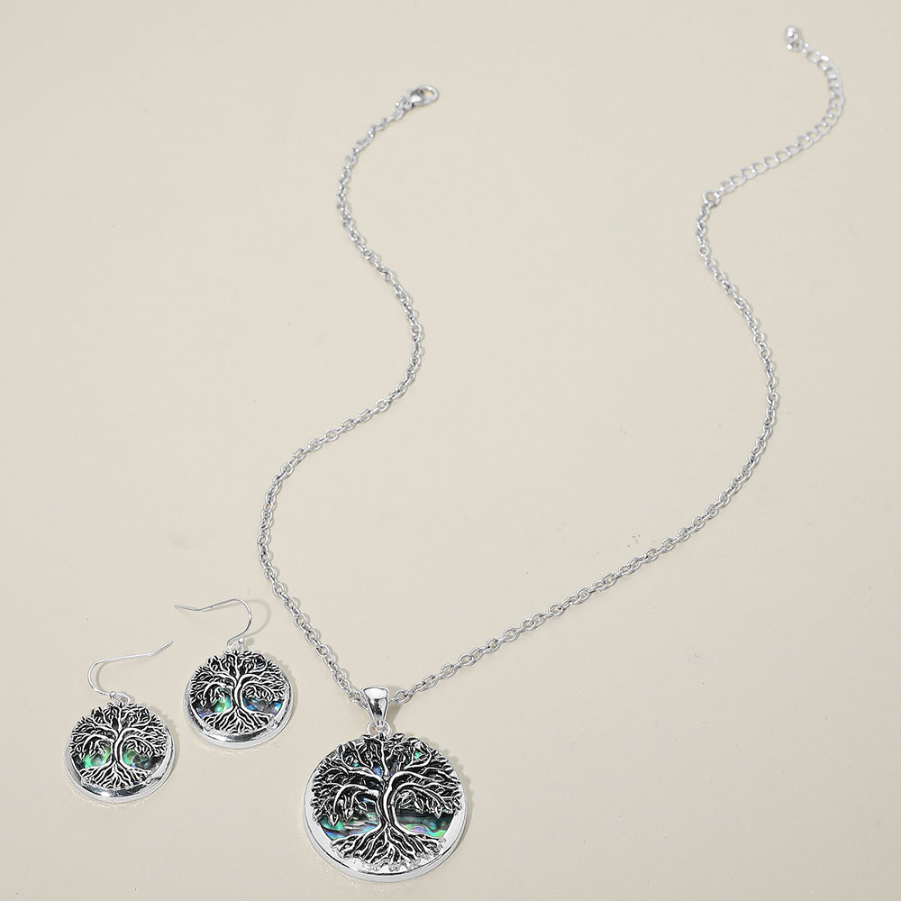 Details • Necklace Size : 18" + 3.5" L • Pendant Size : 1.4" X 1.8" • Earrings Size : 1.5" L • Elegant Tree of Life jewelry set featuring a detailed pendant necklace with matching dangle earrings. The intricate branching design adds symbolic meaning and timeless style. Lightweight and versatile, perfect for everyday wear, gifting, or adding a meaningful touch to any outfit. • Lead and Nickel Compliant
