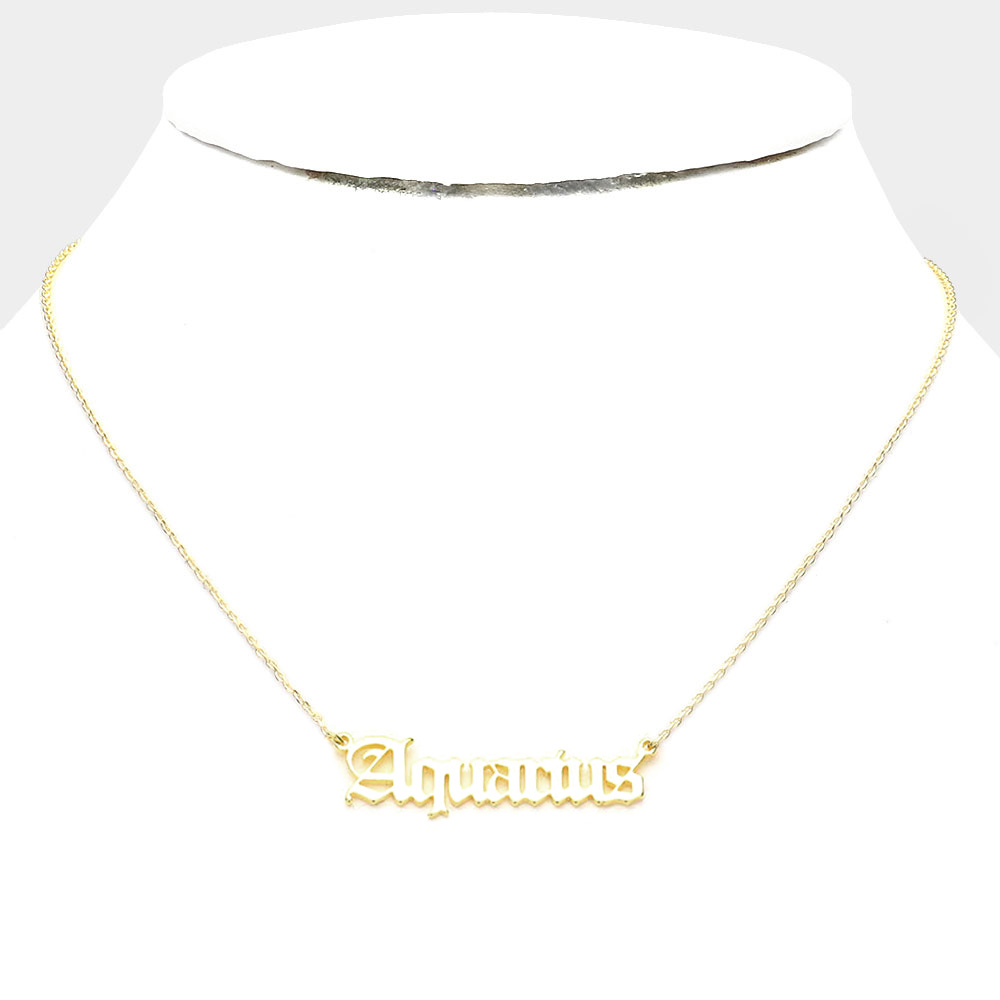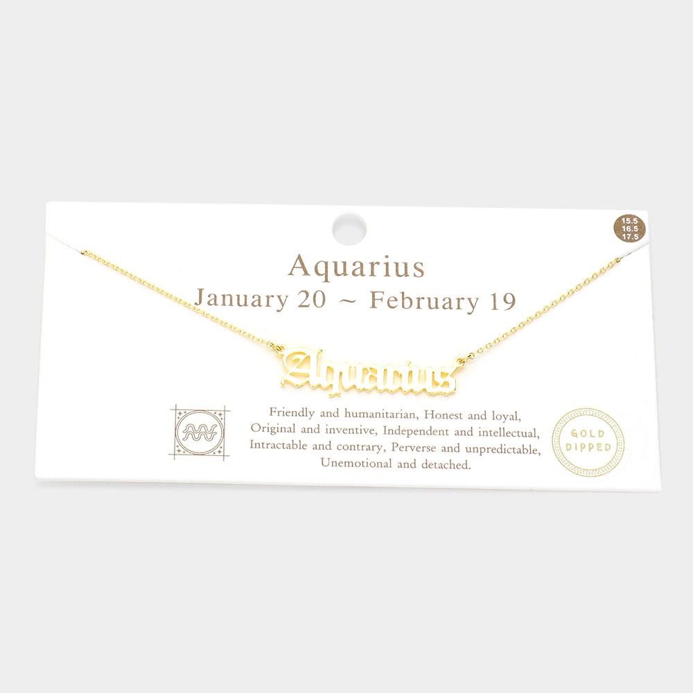 Aquarius Gold Dipped Zodiac Name Pendant Necklace