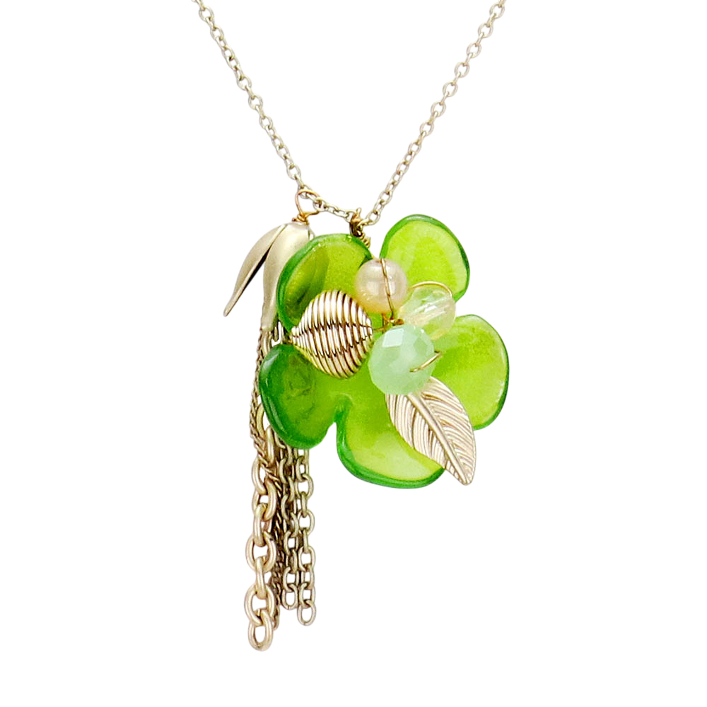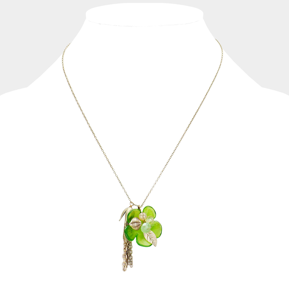 Metal Bubble Flower Pointed Faceted Beaded Necklace