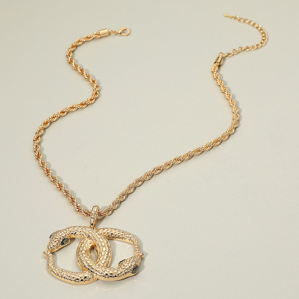 Bold Textured Metal Interlocking Snake Pendant Chunky Twisted Chain Necklace Bold Textured Metal Interlocking Snake Pendant Chunky Twisted Chain Necklace Bold Textured Metal Interlocking Snake Pendant Chunky Twisted Chain Necklace