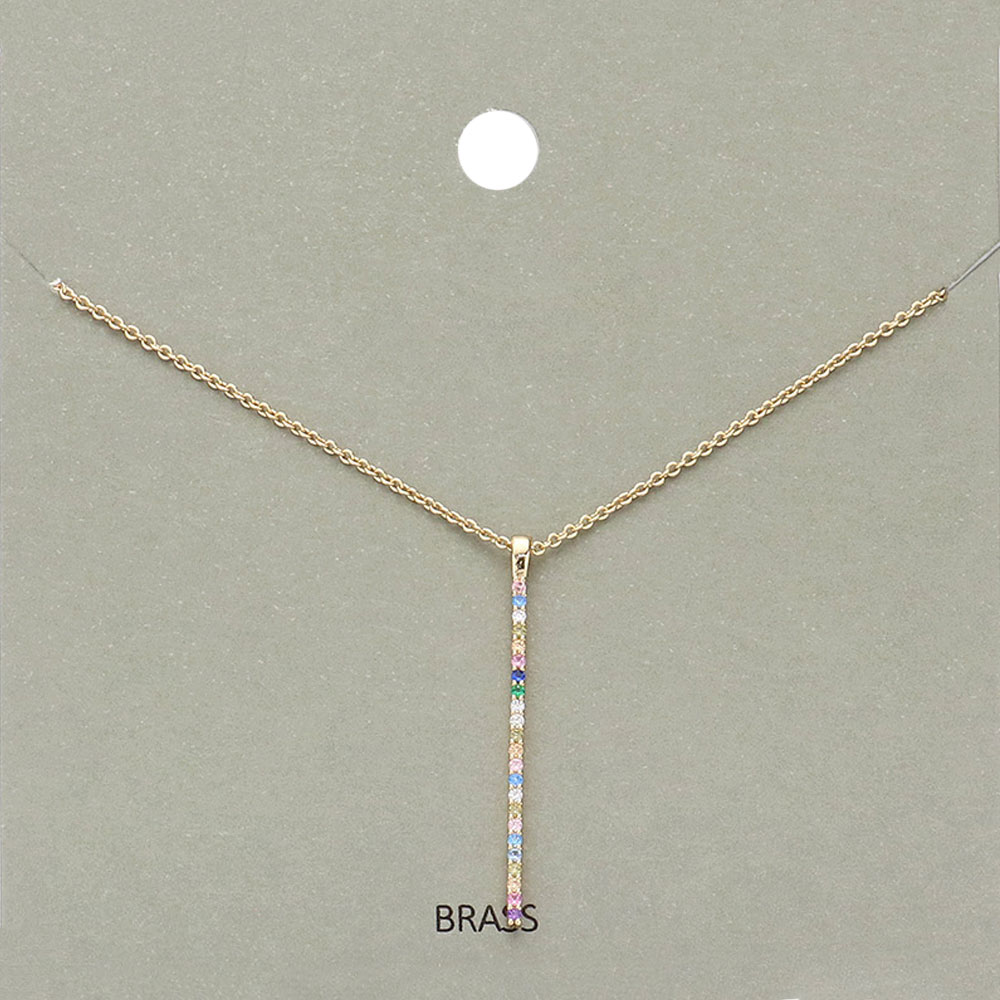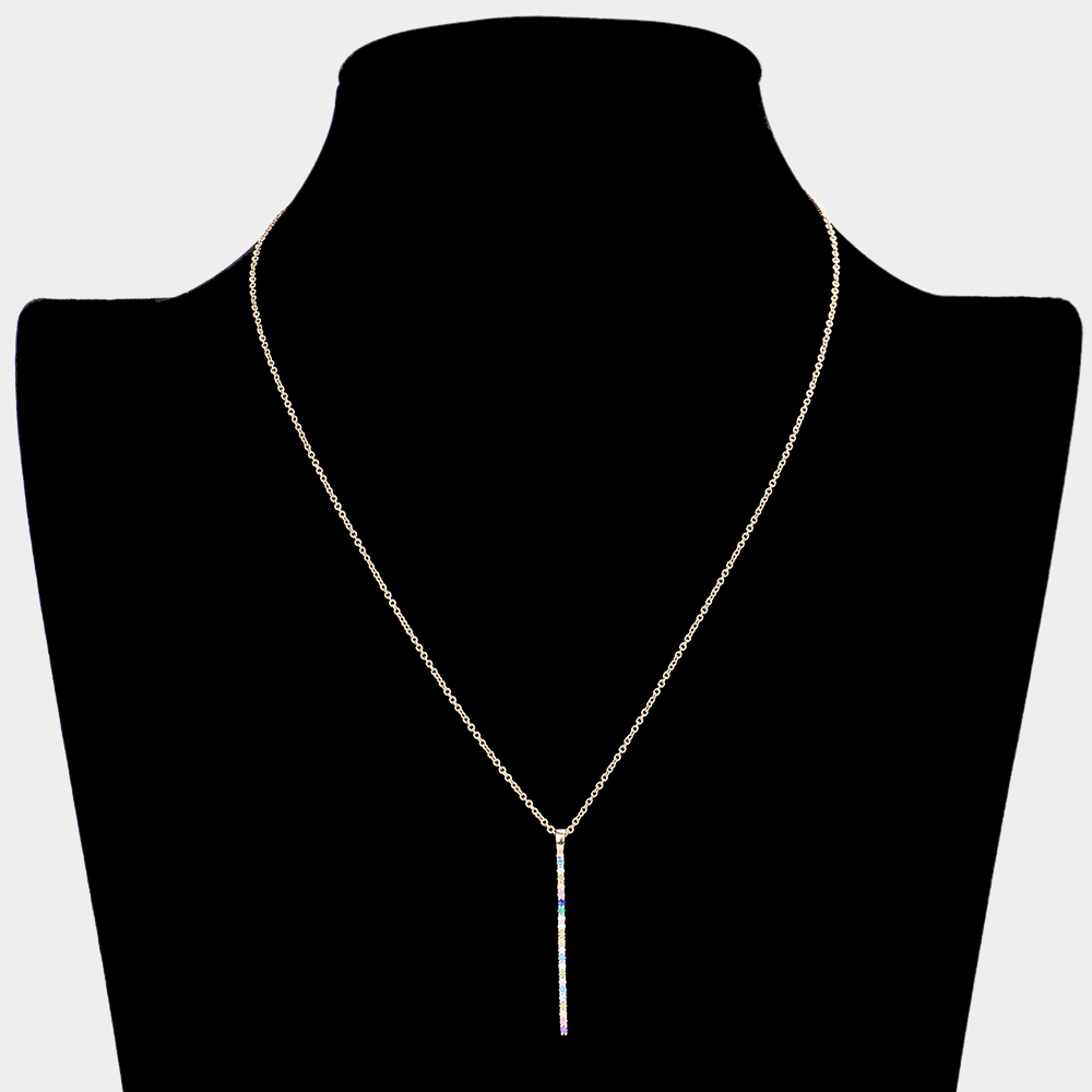 Brass Metal Rhinestone Embellished Bar Pendant Necklace