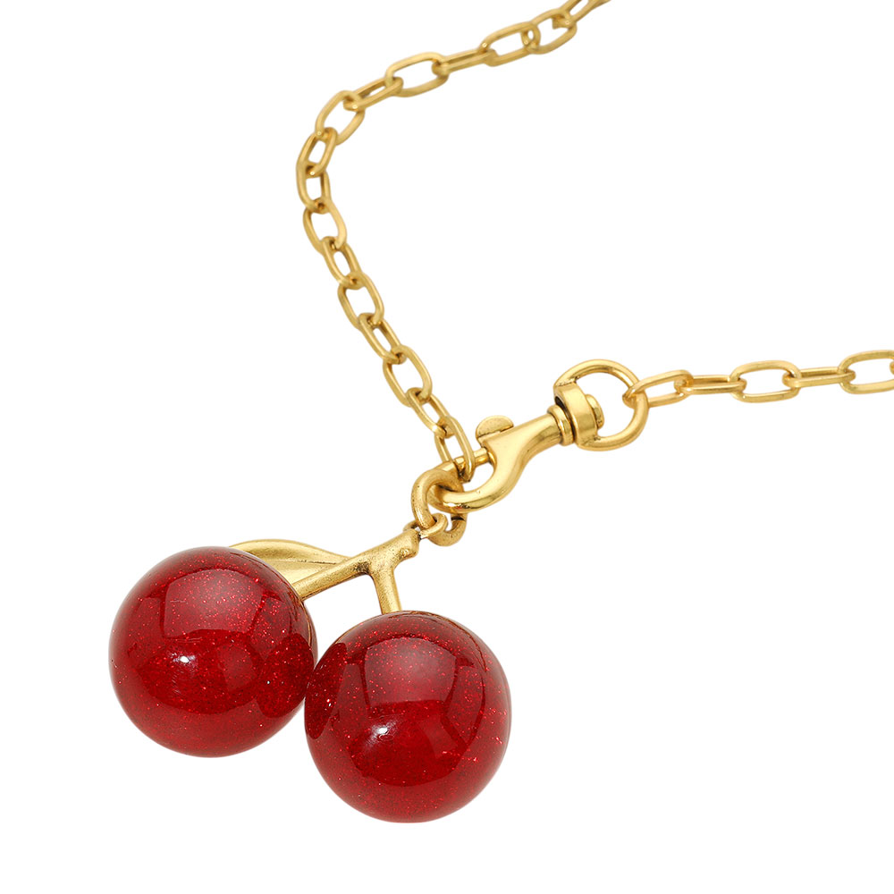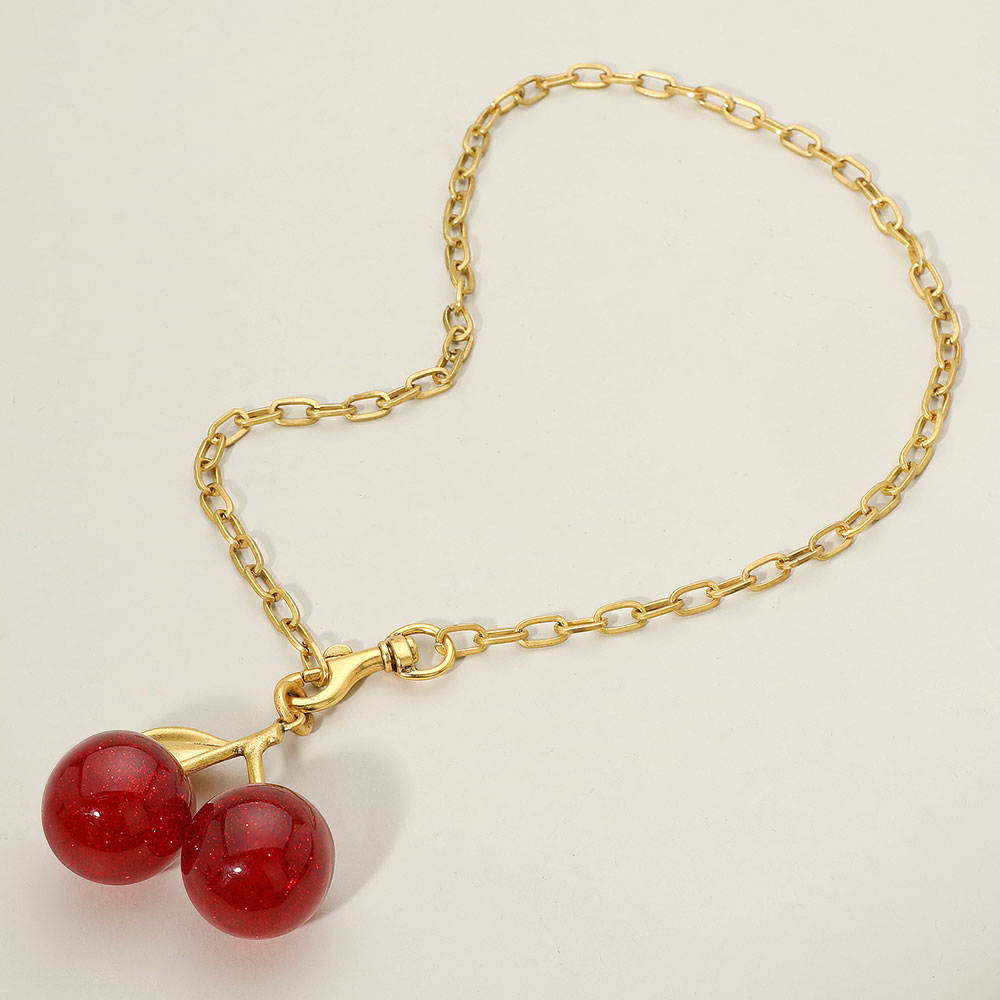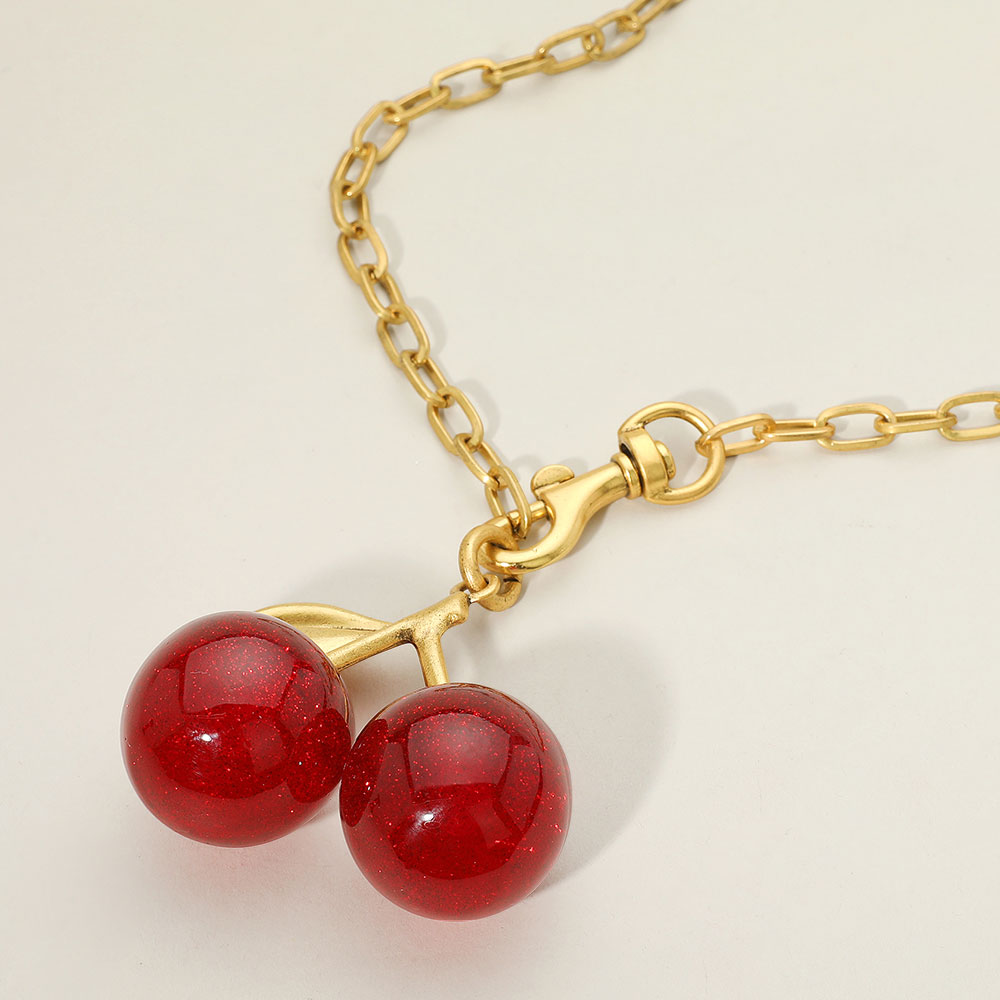 Details • Necklace Size : 27" L • Pendant Size : 2.75" X 3" • Make a statement with this bold cherry pendant necklace featuring a chunky chain design. A playful and trendy piece for fashion-forward looks and standout styling. • Lead and Nickel Compliant
