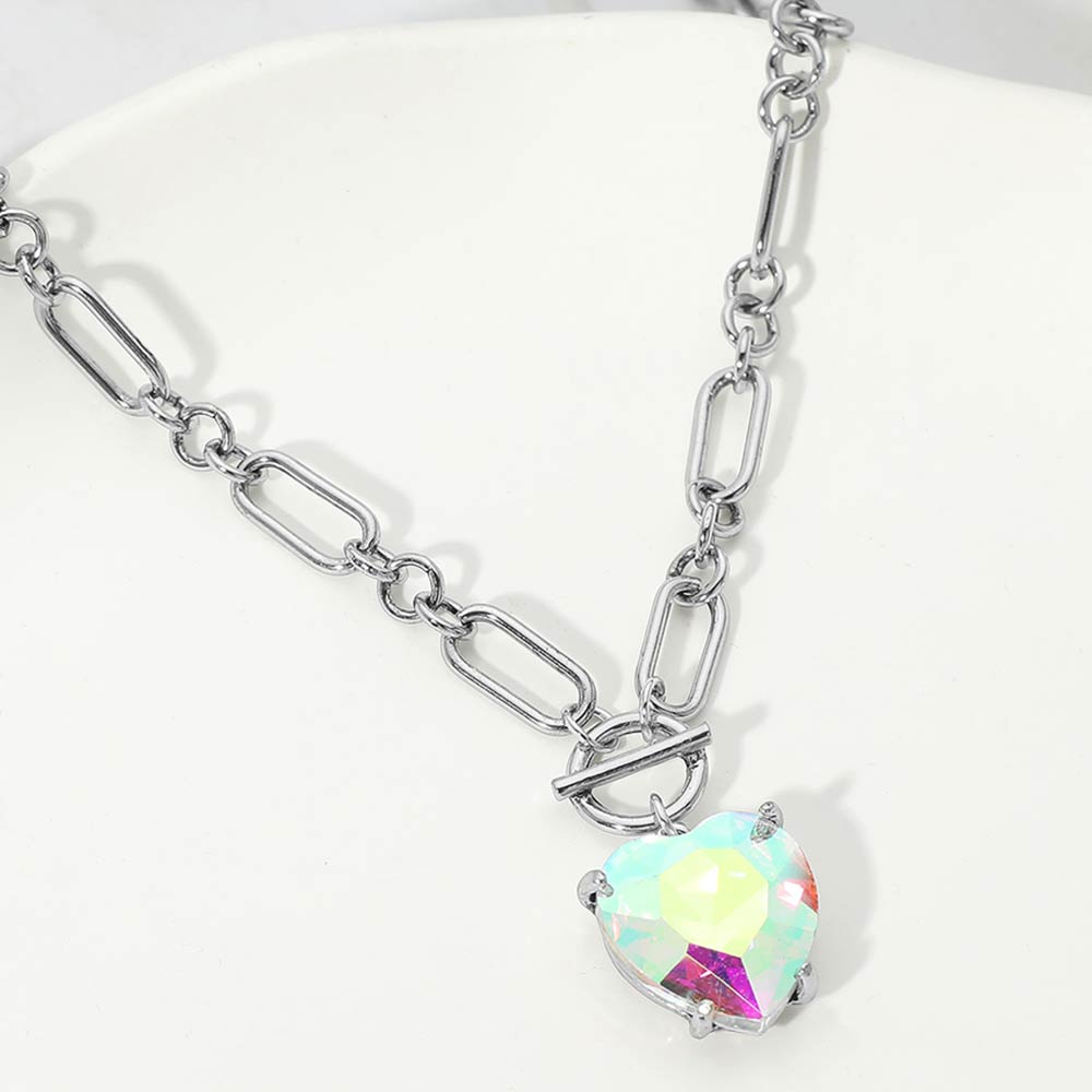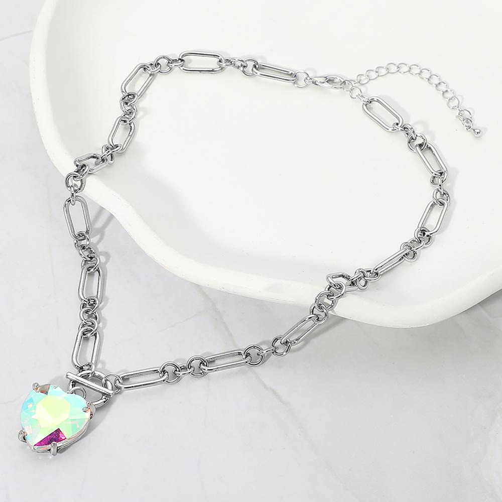 Chunky Heart Stone Cluster Toggle Pendant Necklace