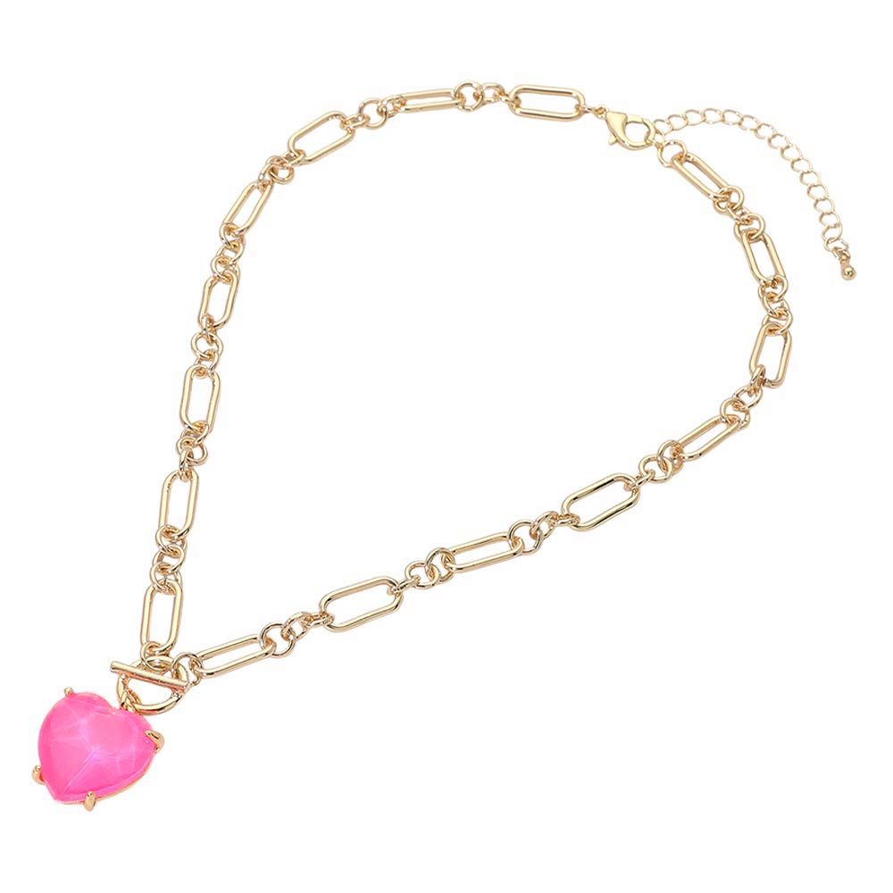 Chunky Heart Stone Cluster Toggle Pendant Necklace