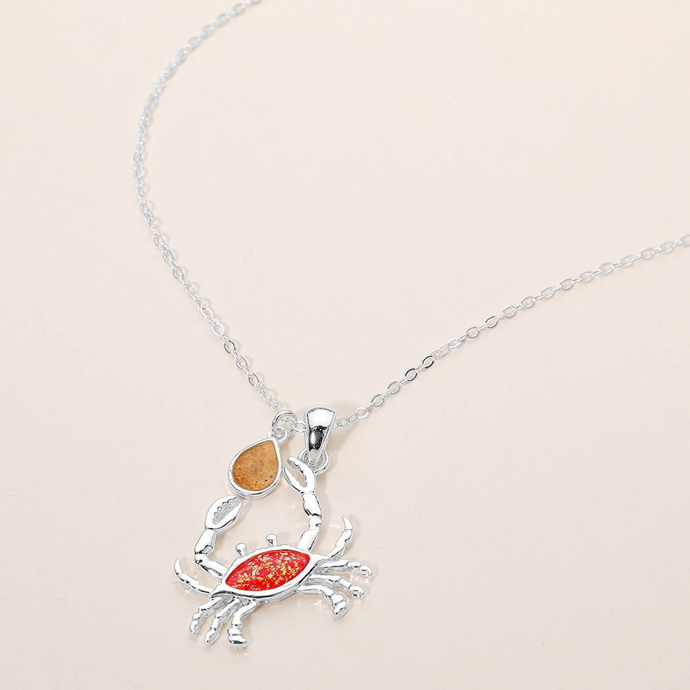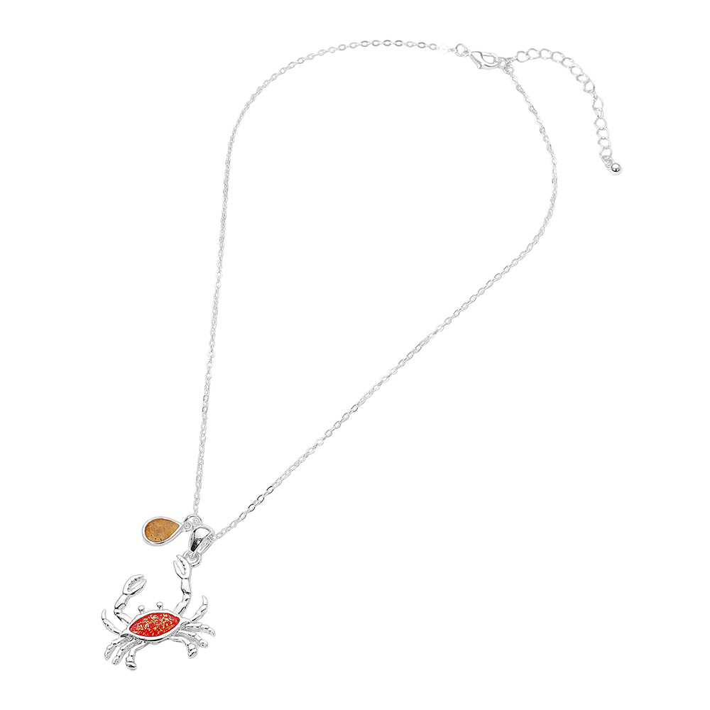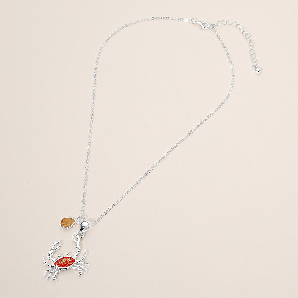 Crab Teardrop Charm Pendant Necklace