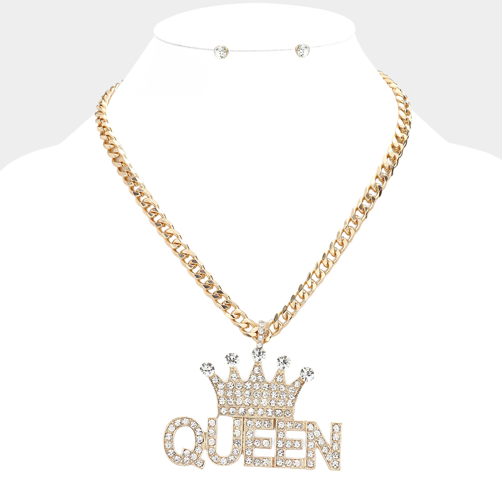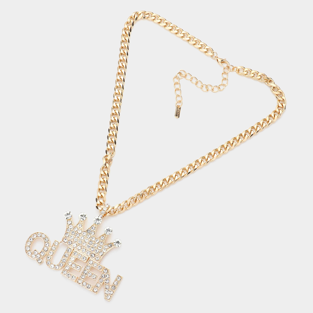 Crown Queen Message Pendant Necklace
