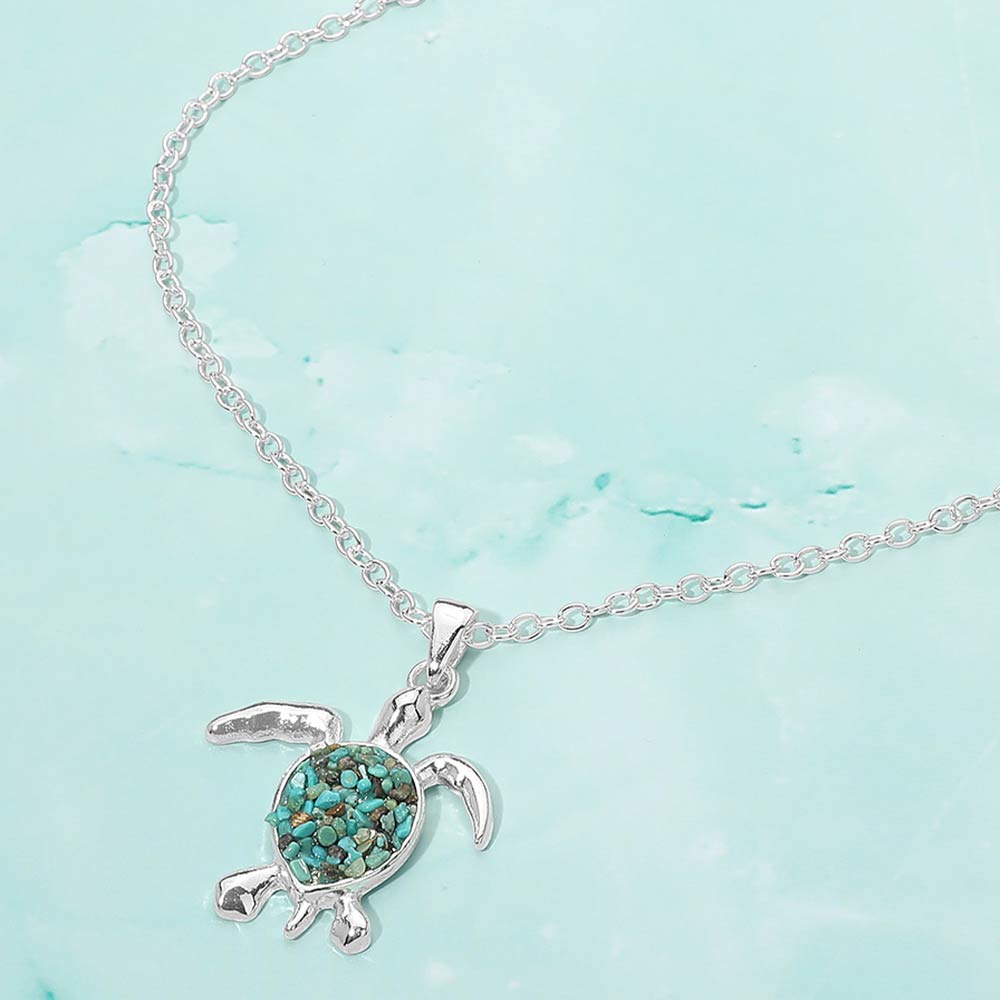 Crushed Pebble Sea Turtle Pendant Necklace Crushed Pebble Sea Turtle Pendant Necklace Crushed Pebble Sea Turtle Pendant Necklace
