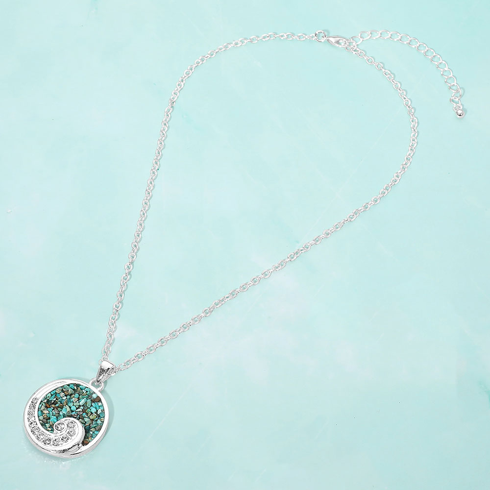 • Swirl pendant necklace featuring a textured inlay center with a sparkling accent curve for added dimension. Inspired by coastal and boho aesthetics, this versatile necklace is perfect for summer collections, beach boutiques, and gift shops, offering strong visual appeal and easy styling for everyday and resort looks.