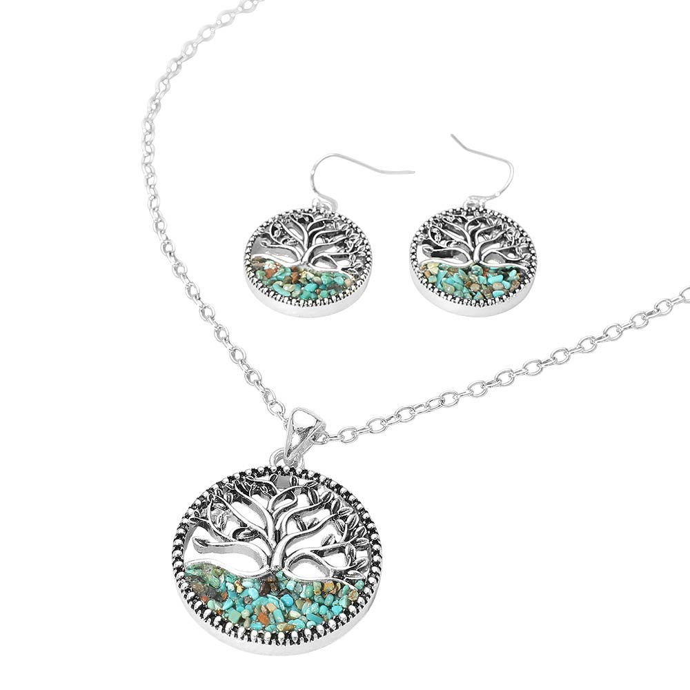 • This Tree of Life pendant necklace and matching earring set features a detailed circular design symbolizing growth, strength, and connection. The coordinated set offers timeless appeal with an elegant silhouette that pairs easily with everyday outfits or meaningful gifting collections. Ideal for boutiques seeking symbolic jewelry that resonates across seasons and occasions.