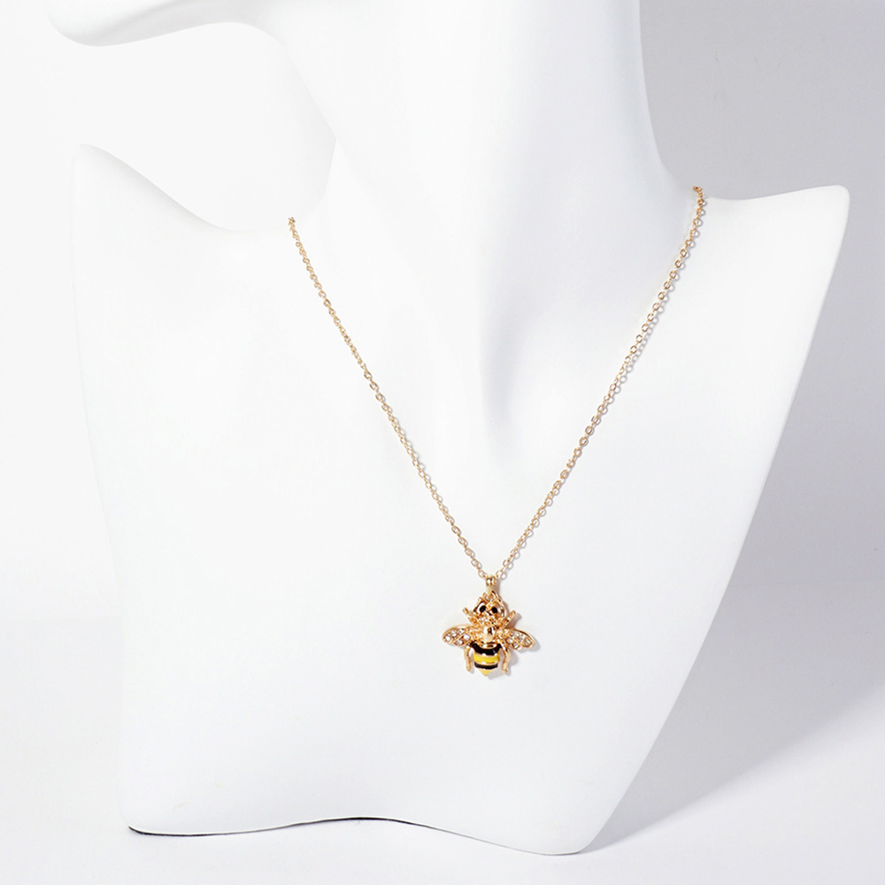 Stone Embellished Enamel Honey Bee Pendant Triple Layered Necklace