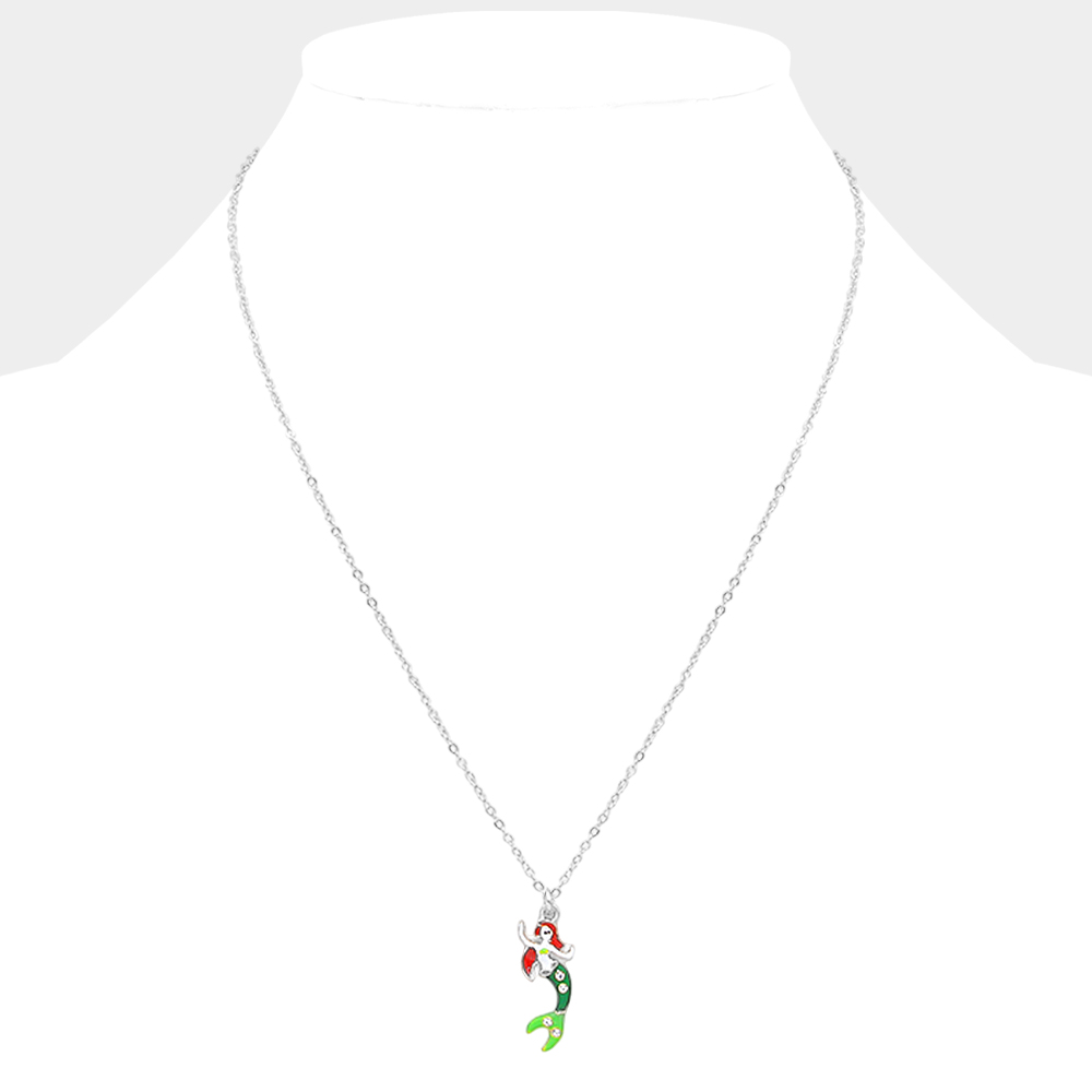 Metal Conch Shell Mermaid Tail Pendant Necklace