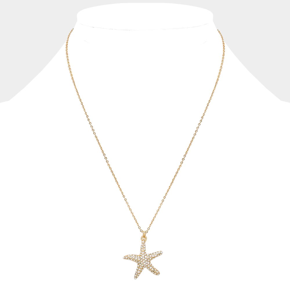 Teardrop Stone Pendant Pointed Star Starfish Charm Embellished Multi Layered Statement Necklace