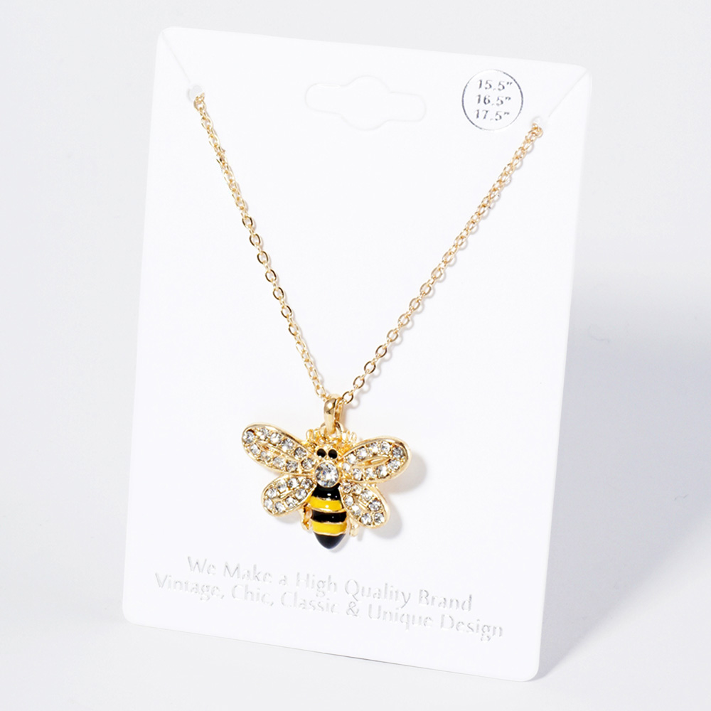 Crystal Rhinestone Paved Enamel Honey Bee Pendant Necklace
