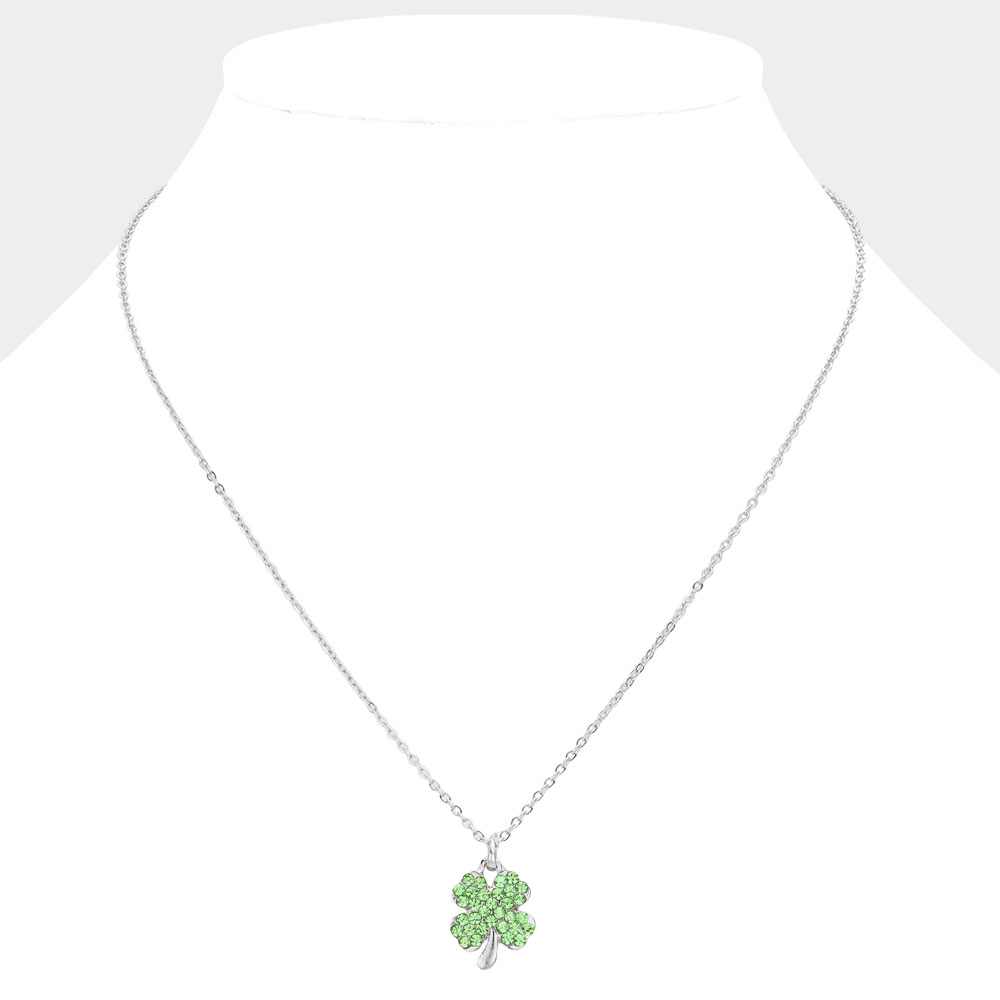 Crystal Stone Paved Clover Pendant Necklace
