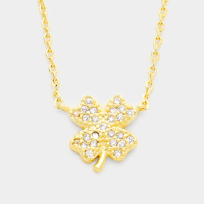 Heart Crystal Rhinestone Clover Pendant Necklace