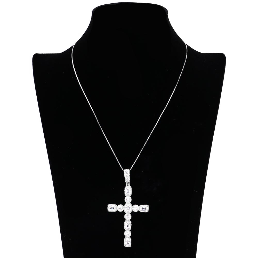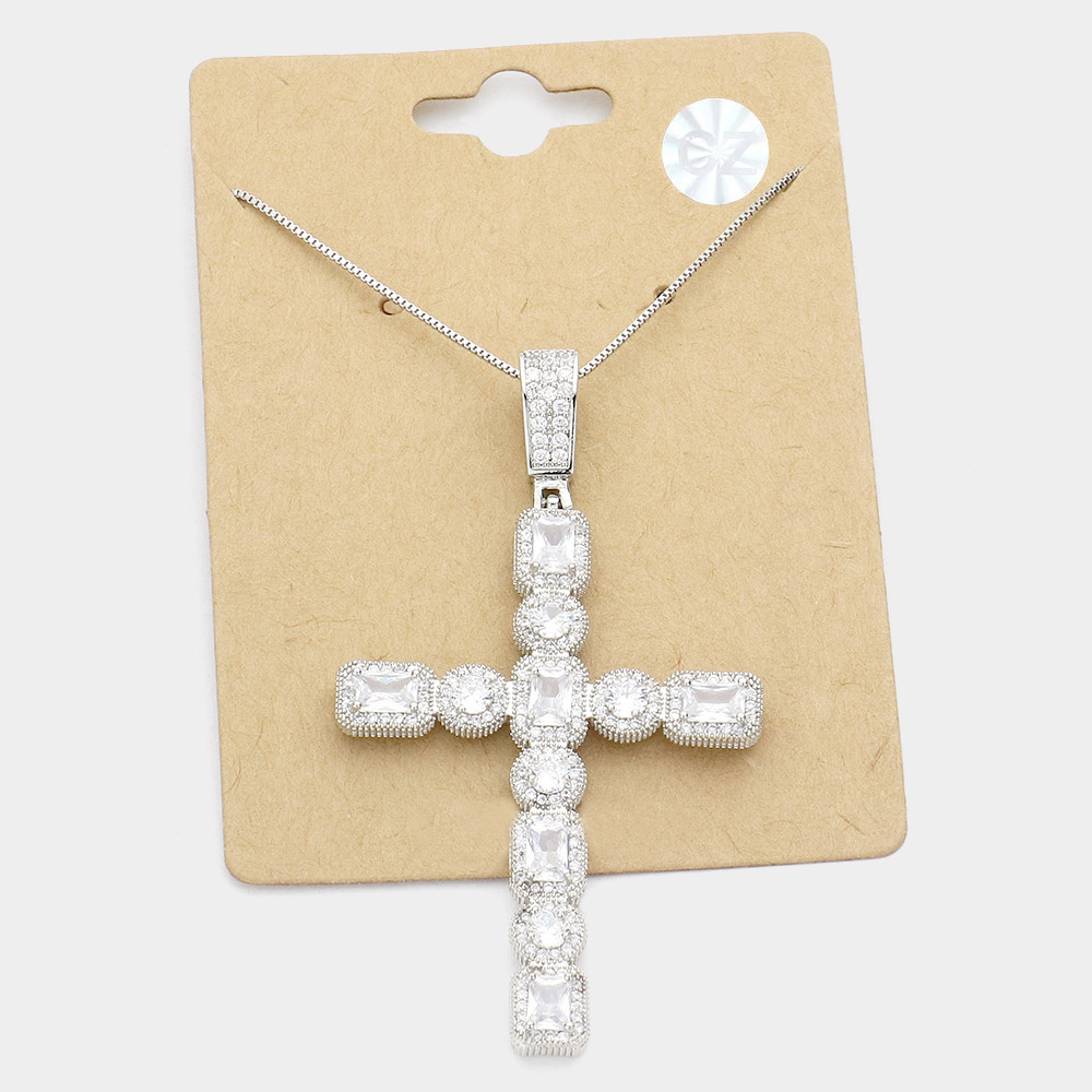 14K Gold Dipped CZ Stone Cross Pendant Necklace