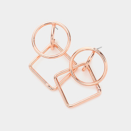 Sun Accented Open Metal Circle Link Dangle Earrings