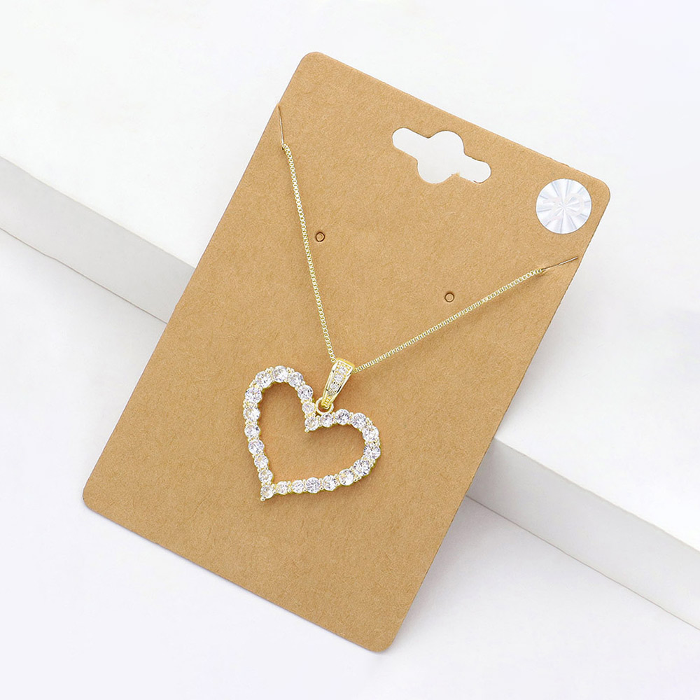 CZ Stone Paved Open Heart Pendant Necklace