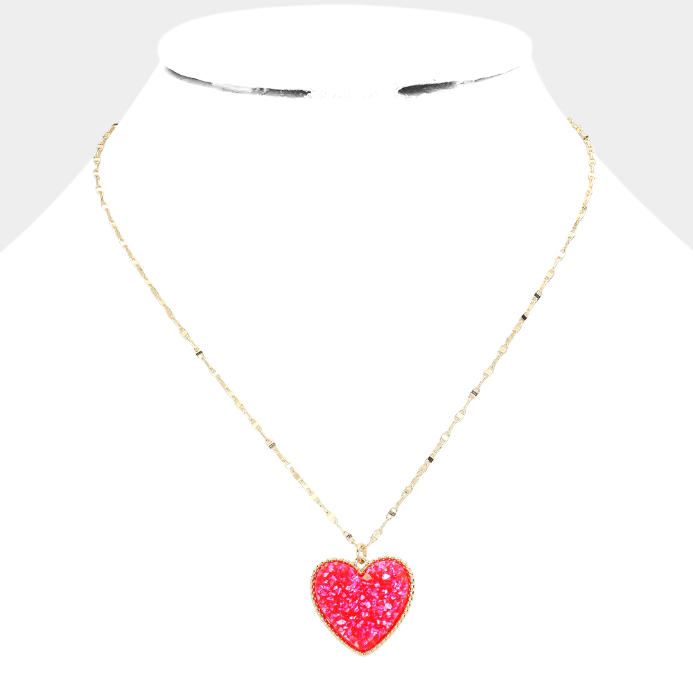 Druzy Heart Pendant Necklace