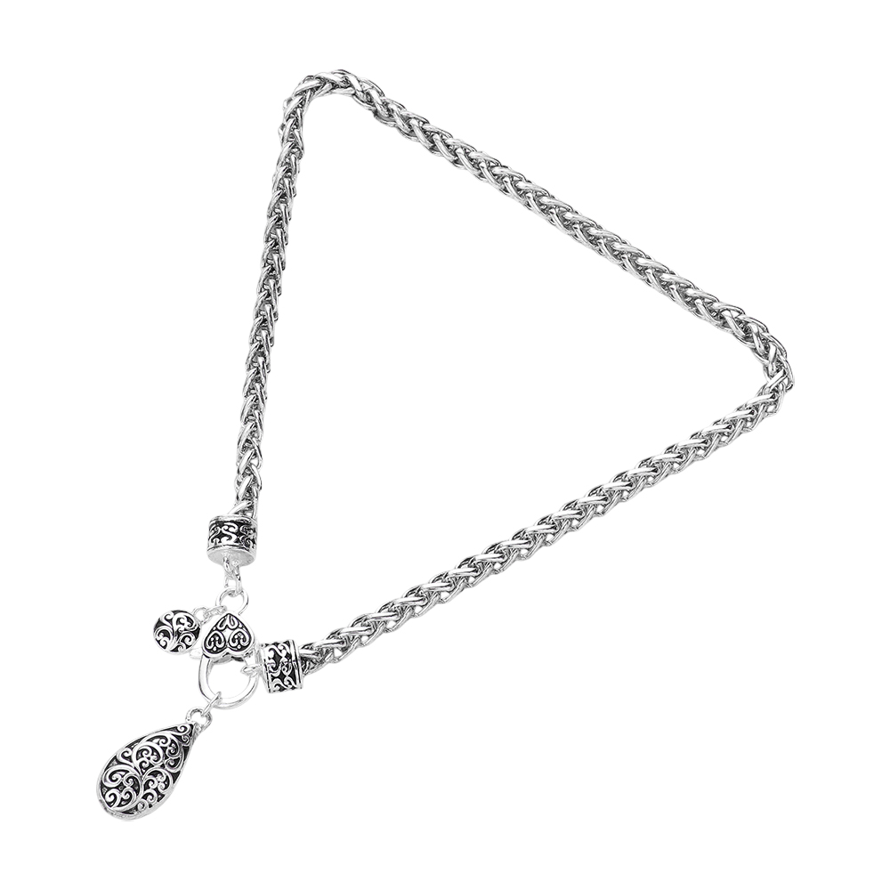 Embossed Antique Metal Textured Teardrop Pendant Necklace