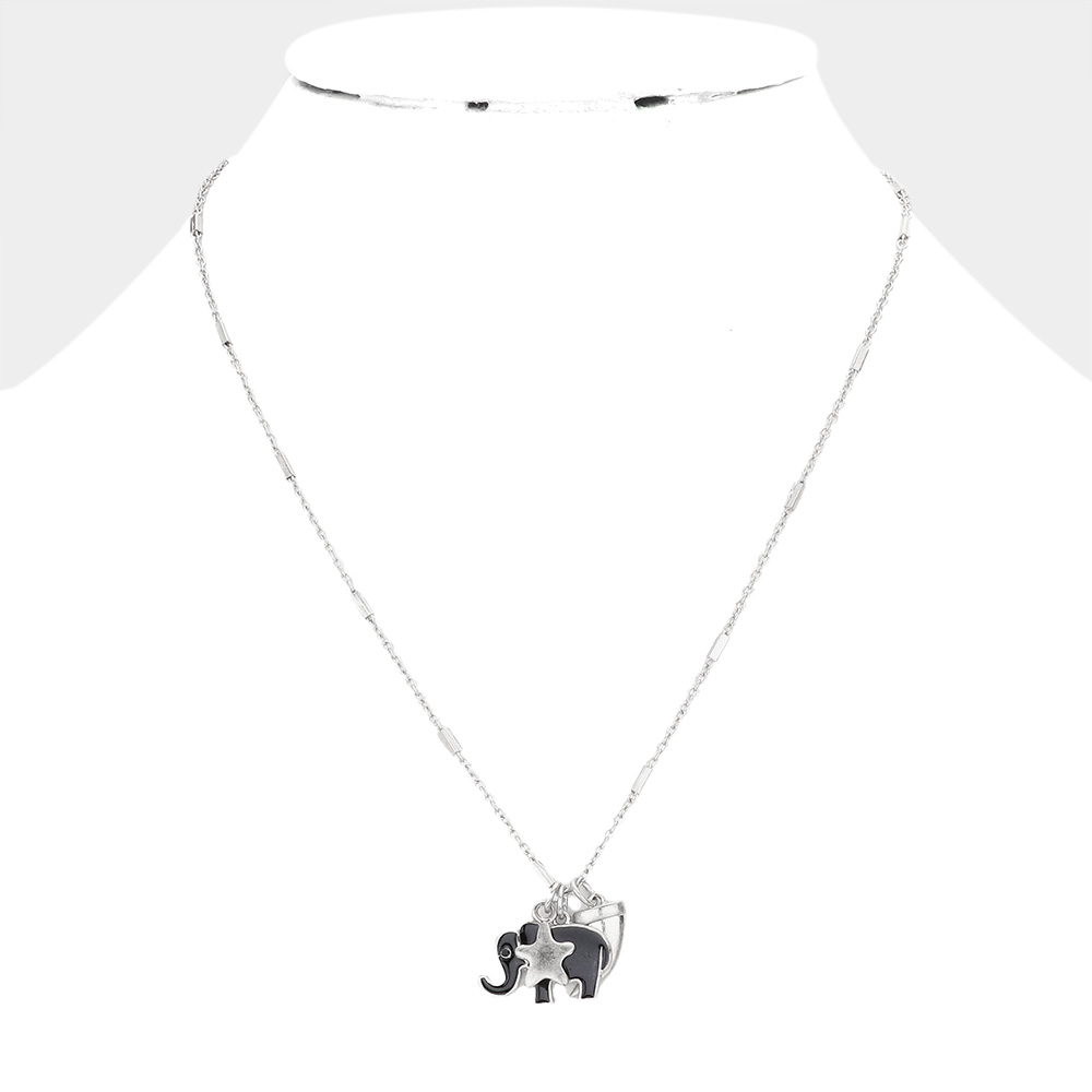 Enamel Elephant Metal Horn Star Pendant Necklace