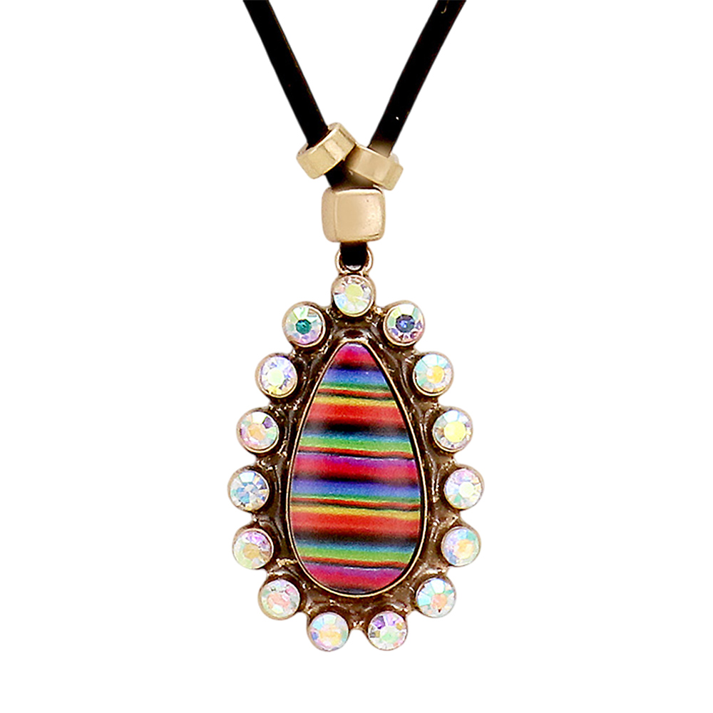 Faux Leather Cord Serape Rhinestone Teardrop Necklace