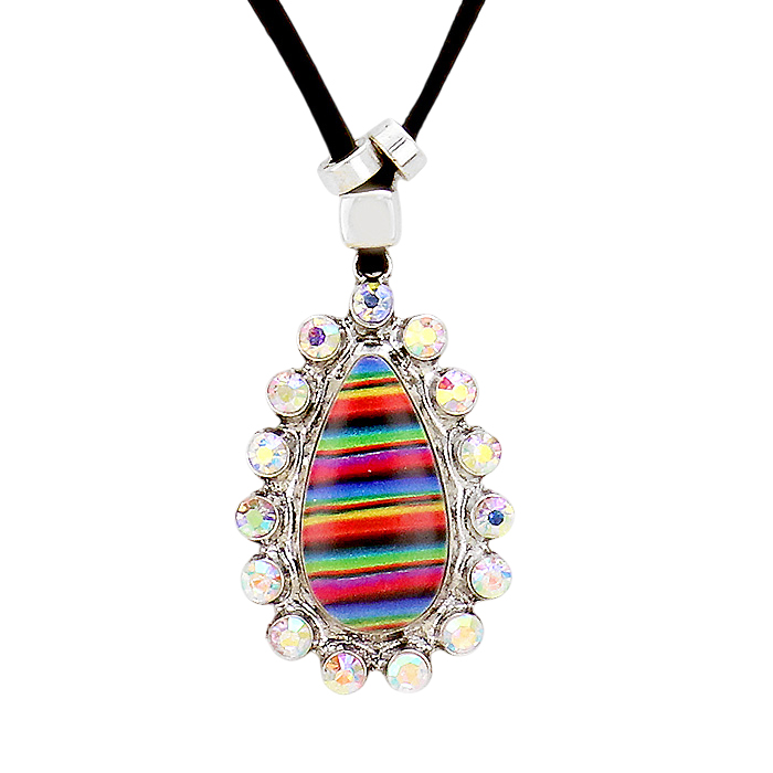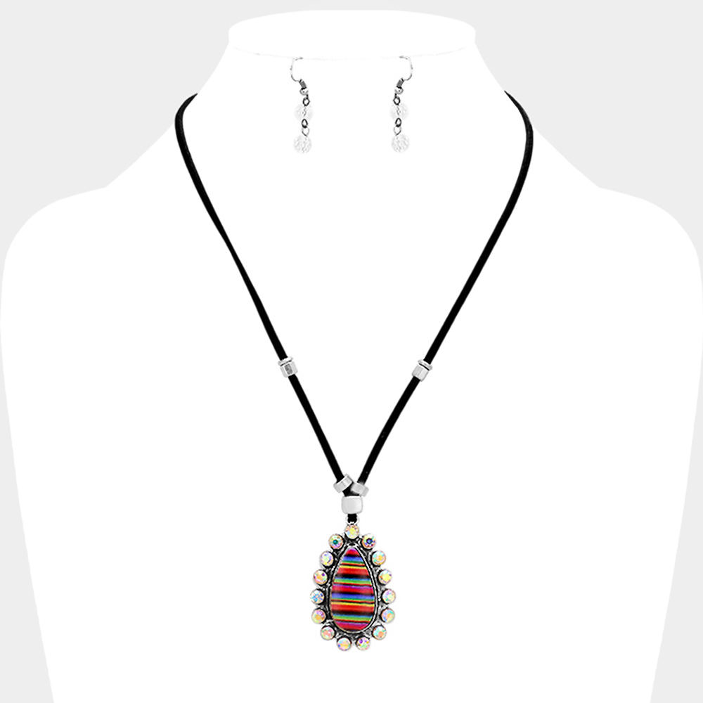 Faux Leather Cord Serape Rhinestone Teardrop Necklace