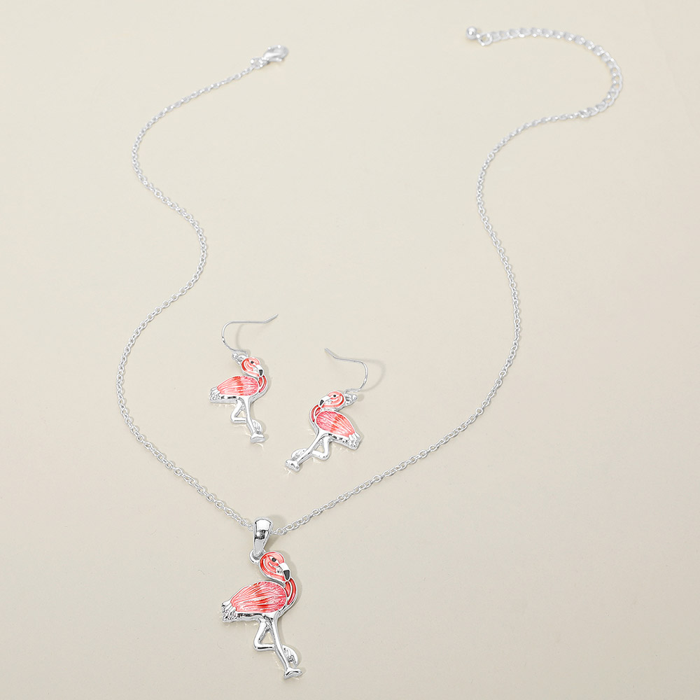 Details • Necklace Size : 18" + 3" L • Pendant Size : 0.8" X 1.75" • Earrings Size : 1.5" L • Made in Vietnam • Flamingo pendant necklace and matching earring set designed with a playful tropical motif that adds charm and personality to any outfit. Perfect for beach boutiques, resort shops, summer collections, and gift displays. This coordinated jewelry set appeals to customers who love fun statement accessories, vacation inspired styles, and cheerful animal themed designs. • Lead and Nickel Compliant