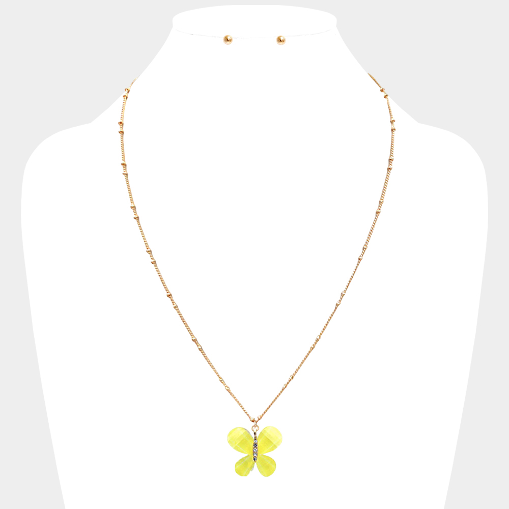 Glittered Resin Butterfly Pendant Necklace
