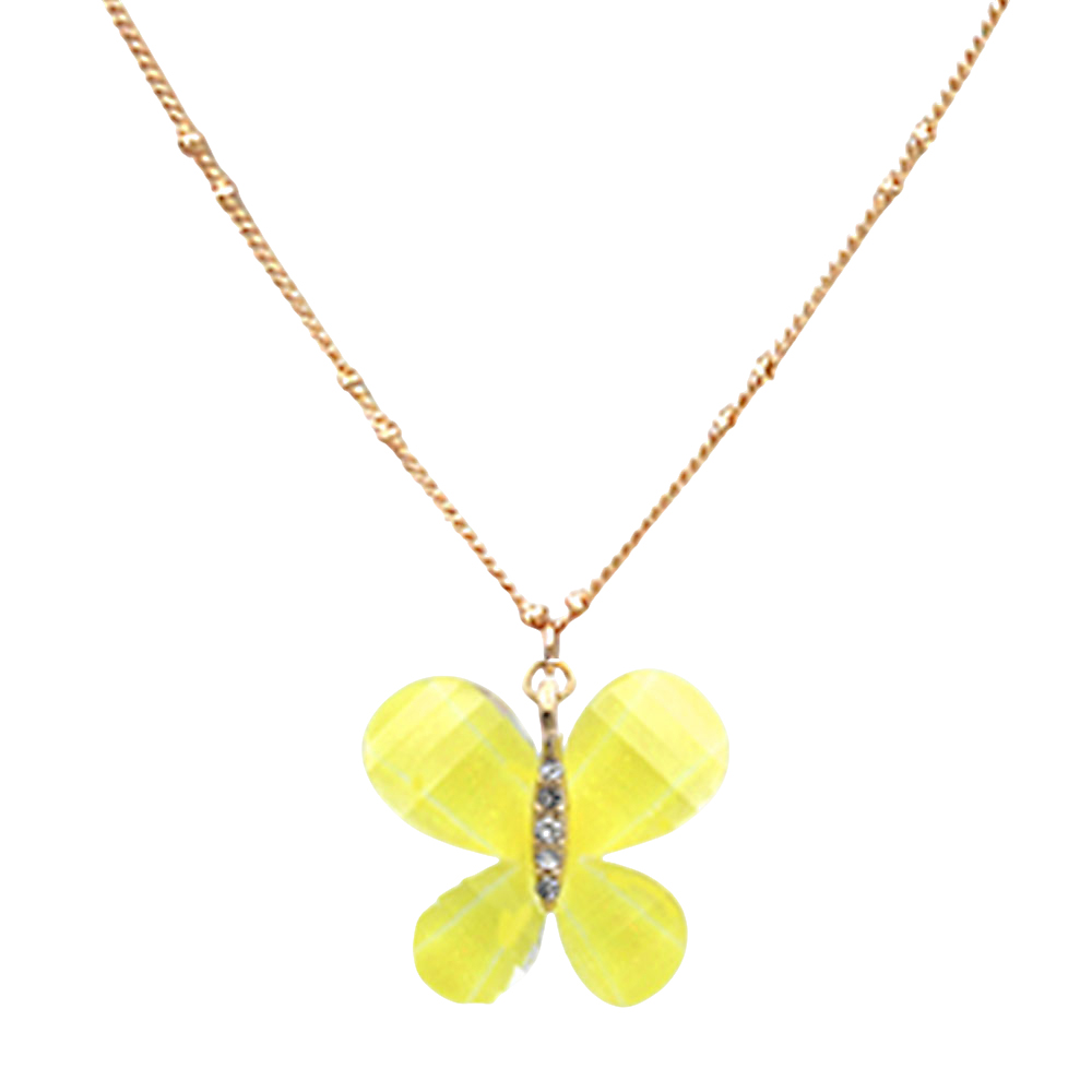 Dainty Butterfly CZ Stone Pendant Accent Rhinestone Paved Necklace