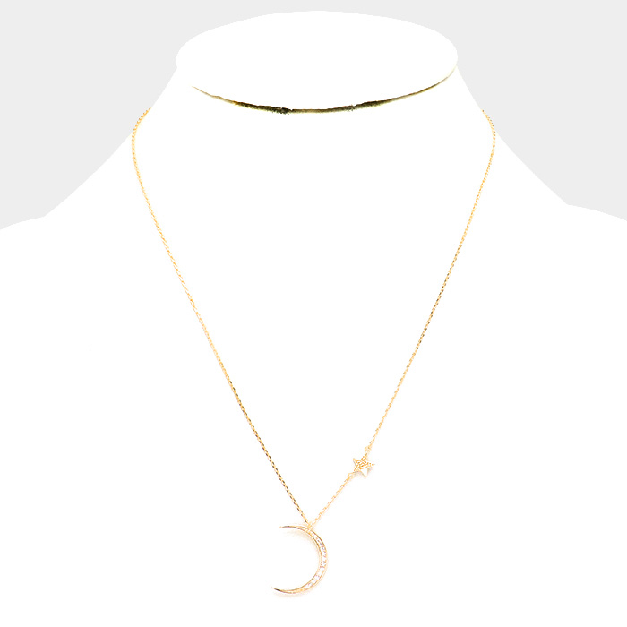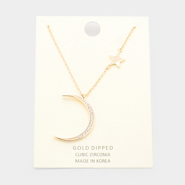 Gold Dipped Cubic Zirconia Moon Star Pendant Necklace