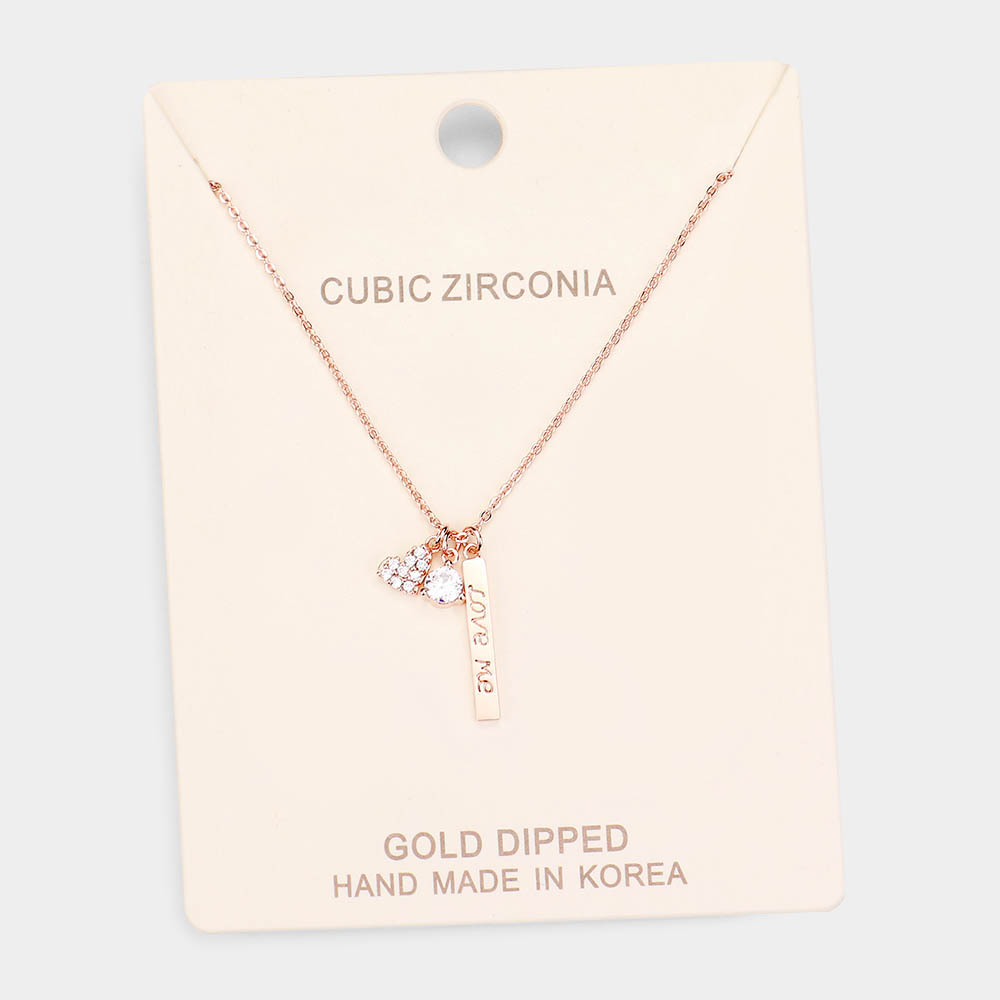 Gold Dipped CZ 'Love Me' Heart Pendant Necklace