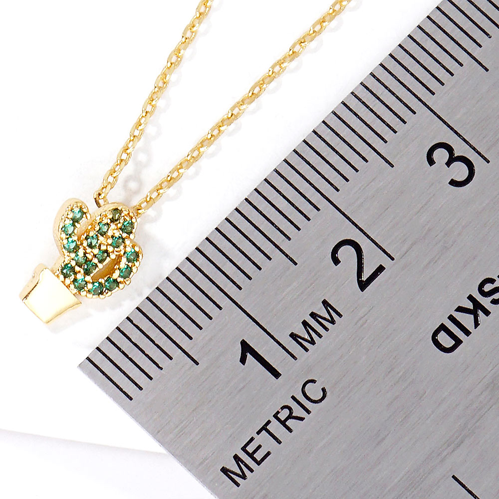 Gold Dipped CZ Stone Paved Cactus Pendant Necklace