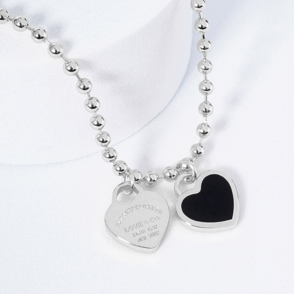 White Gold Dipped Double Heart Pendant Bubble Chain Necklace
